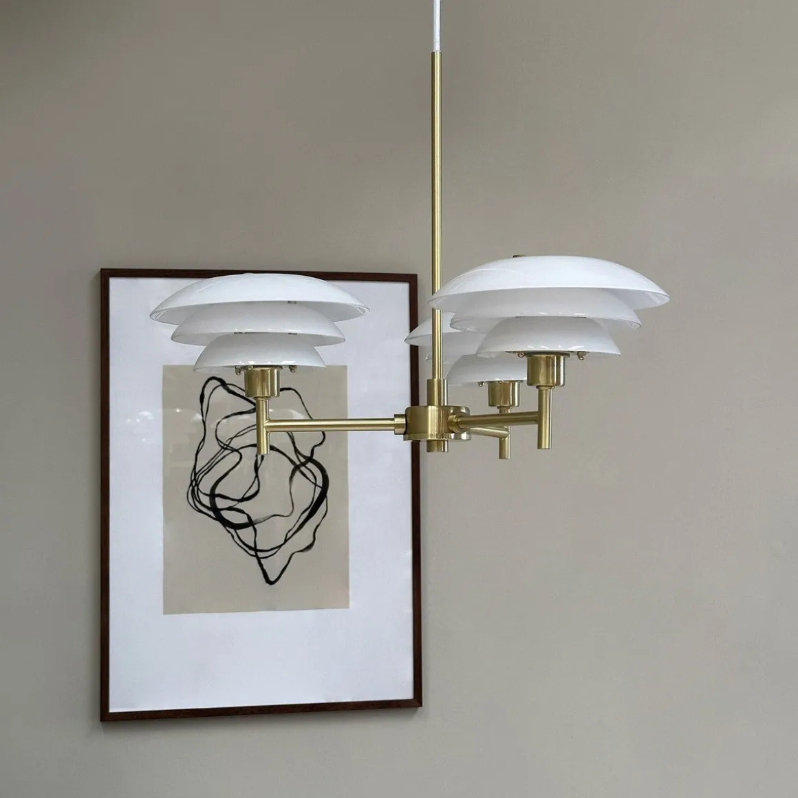 DL20 messing opal lysekrone er en fortryllende og stilig belysningsløsning for hjemmet ditt. Denne lysekronen kombinerer den klassiske messingfinishen med vakre opale nyanser, og skaper en tidløs og luksuriøs atmosfære i rommet ditt.