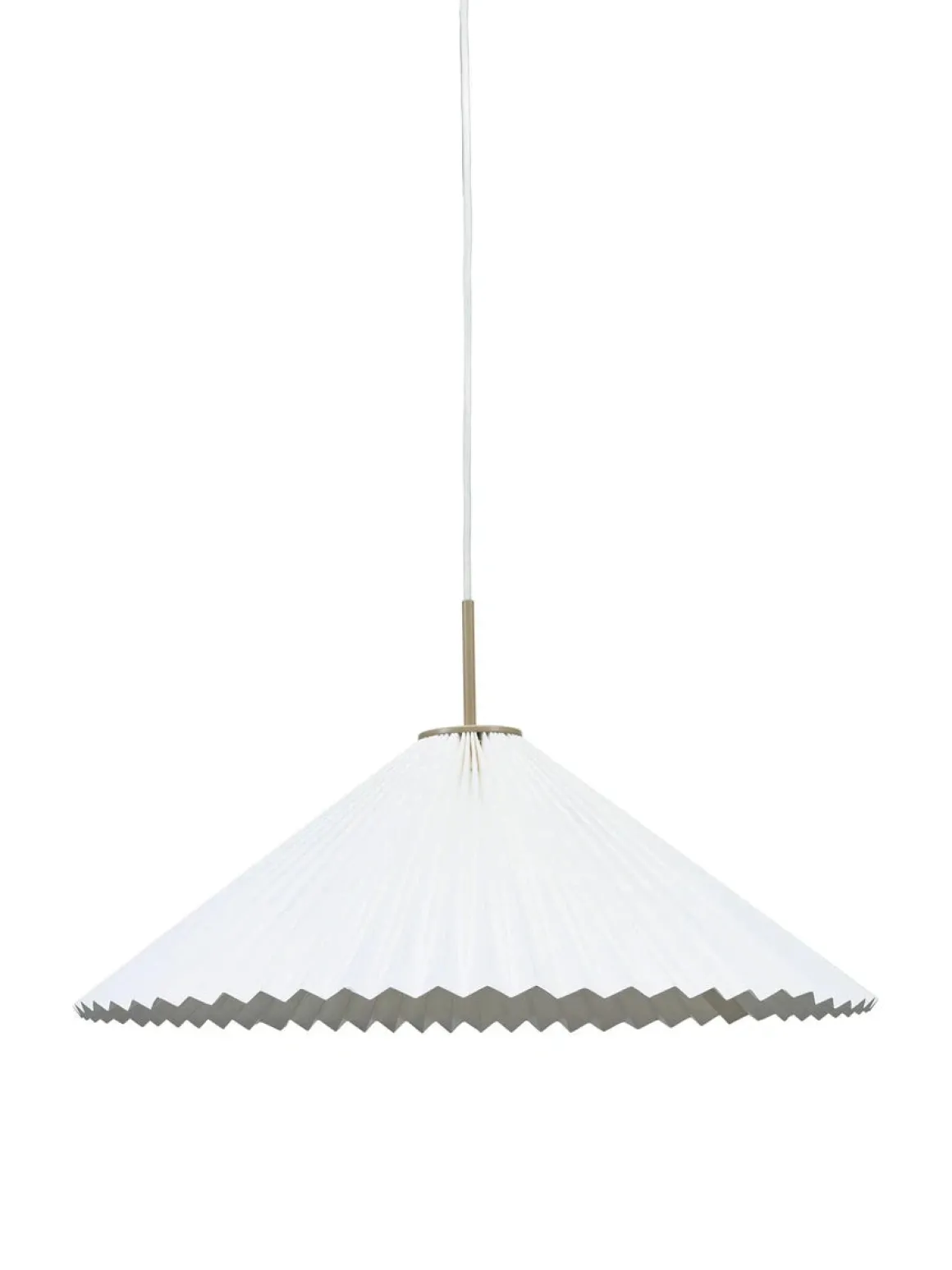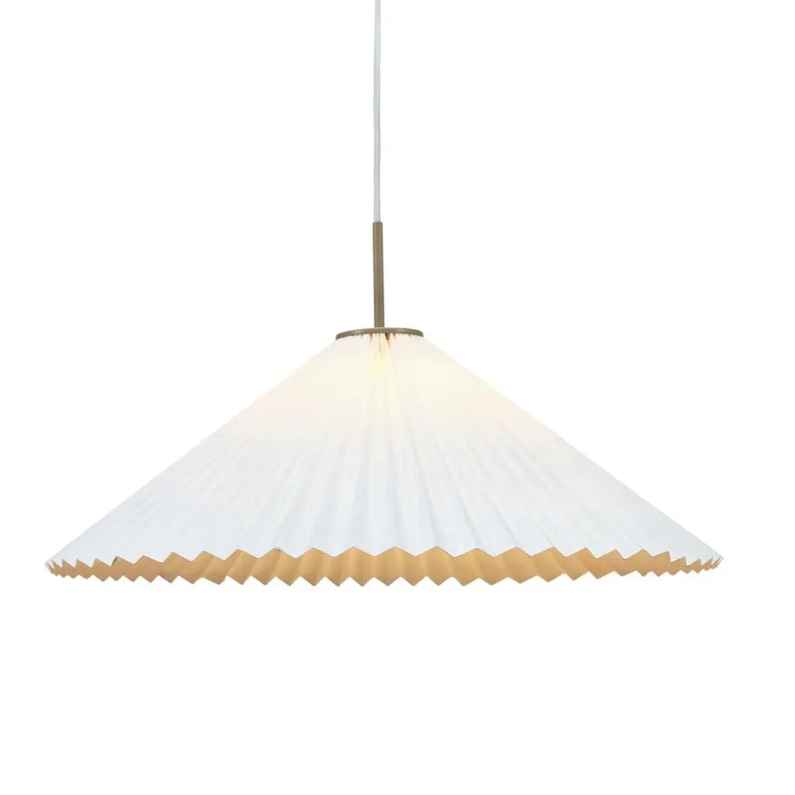Taklampe Dora med 2m hvit tekstilkabel og lampeskjermen er laget av hvitt papir. Takkopp og lampeholder i beigelakkert metall. Lampen leveres med 1 stk E27 lampeholder, klargjort for ujordet tilkobling og krokoppheng til eksisterende takkontakt. Lampeskjermen er 60 cm i diameter. Lyskilde og takkontakt medfølger ikke.
