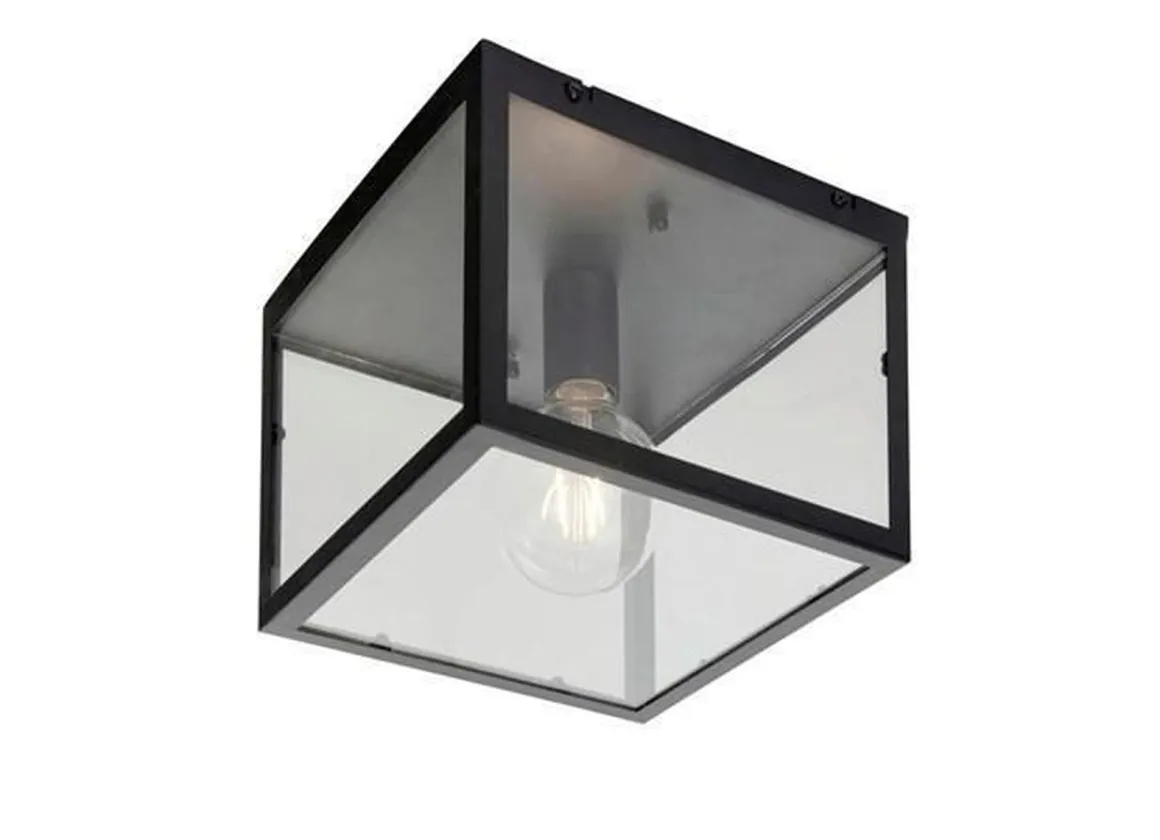 Dovre taklampe hører til resten av Dovre serien som kommer med bord, vegg og taklamper. En trendy serie med sitt enkle design. Lampen har en ramme av metall med sort fargeutførelse og har skjermer av glass.