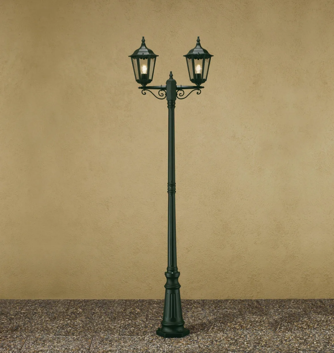 Firenze 2-armet stolpe i grønn farge med 2 lykter. Klassisk lyktestolpe.