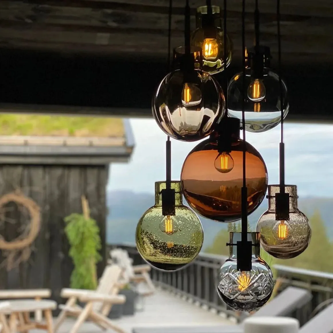Klikk hjem den elegante krystallkulekombinasjonen Fjellglød, inspirert av fjellets gnistrende fargespill om høsten. Komponert av interiørstylist Renate Lorentzen. Krystallkulene er munnblåste og mønstrene er diamantslipt for hånd etter 250 år gamle tradisjoner på Hadeland Glassverk.