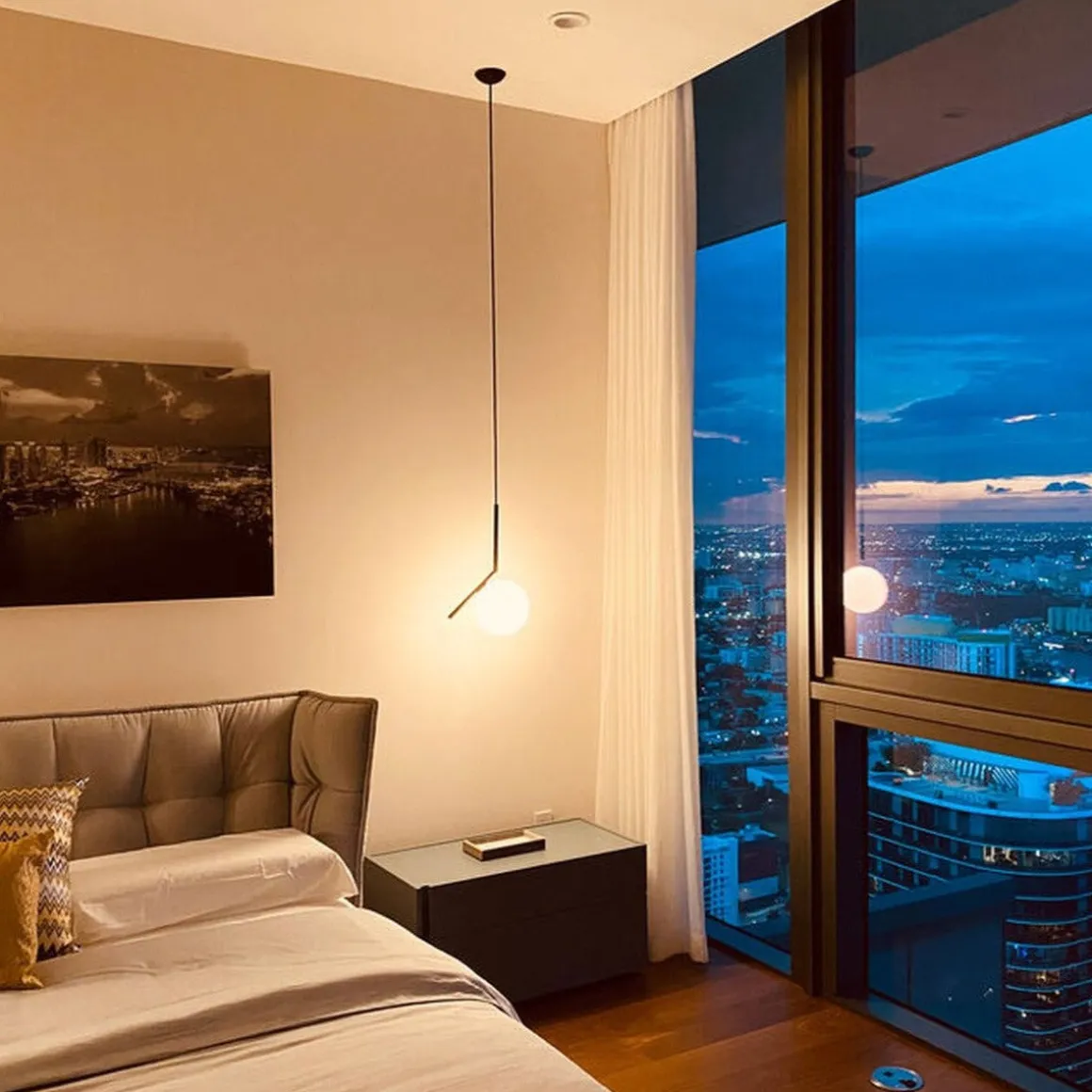 FLOS IC Lights S1 taklampe er en lampe som utfordrer balansesansen vår, kuppelen gir en optisk illusjon av en kule som svever. Lampen er elegant utformet, gir godt med generelt lys, og den blir som et smykke over spisestuen din. Lampen er perfekt å bruke over spiebord, over salongbord, på soverom, i trappeoppgang. Det munnblåste glasset mykner lyset selv om det skulle stå på full styrke, og den er også fin å dimme for stemningslys. Finnes som taklampe, vegglampe, gulvlampe og bordlampe. Designet av Michael Anastassiades i 2014.
