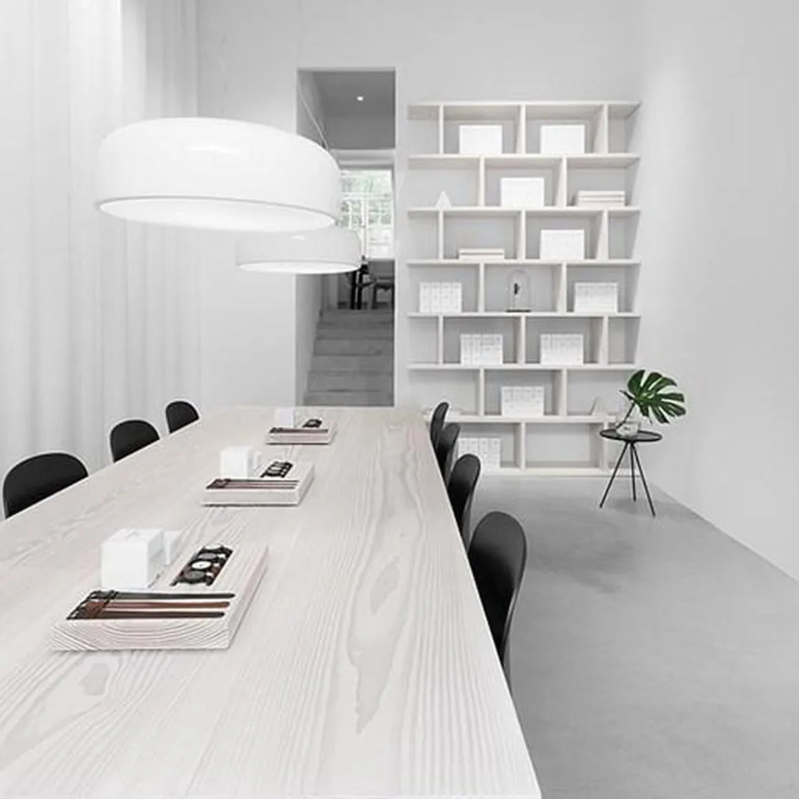 «There’s a market in London called Smithfield and these lamps take their inspiration from a certain typology of metal lamp shade which used to hang in these kind of situations. I’ve always liked the industrial and functional character of these lights, and wanted to make a project out of them, looking for some way of making use of their efficiency in delivering light, and the forms themselves which are so much a part of the good atmosphere of industrial spaces”. Jasper Morrison