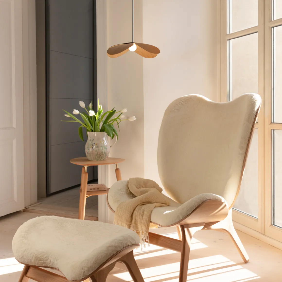 Forget Me Not er laget av eikefinèr og er en lampe inspirert av blomsten med samme navn. Den organiske formen vil tilføre hjemmet varme og vitalitet og bringe de nordiske naturtonene inn i interiøret.