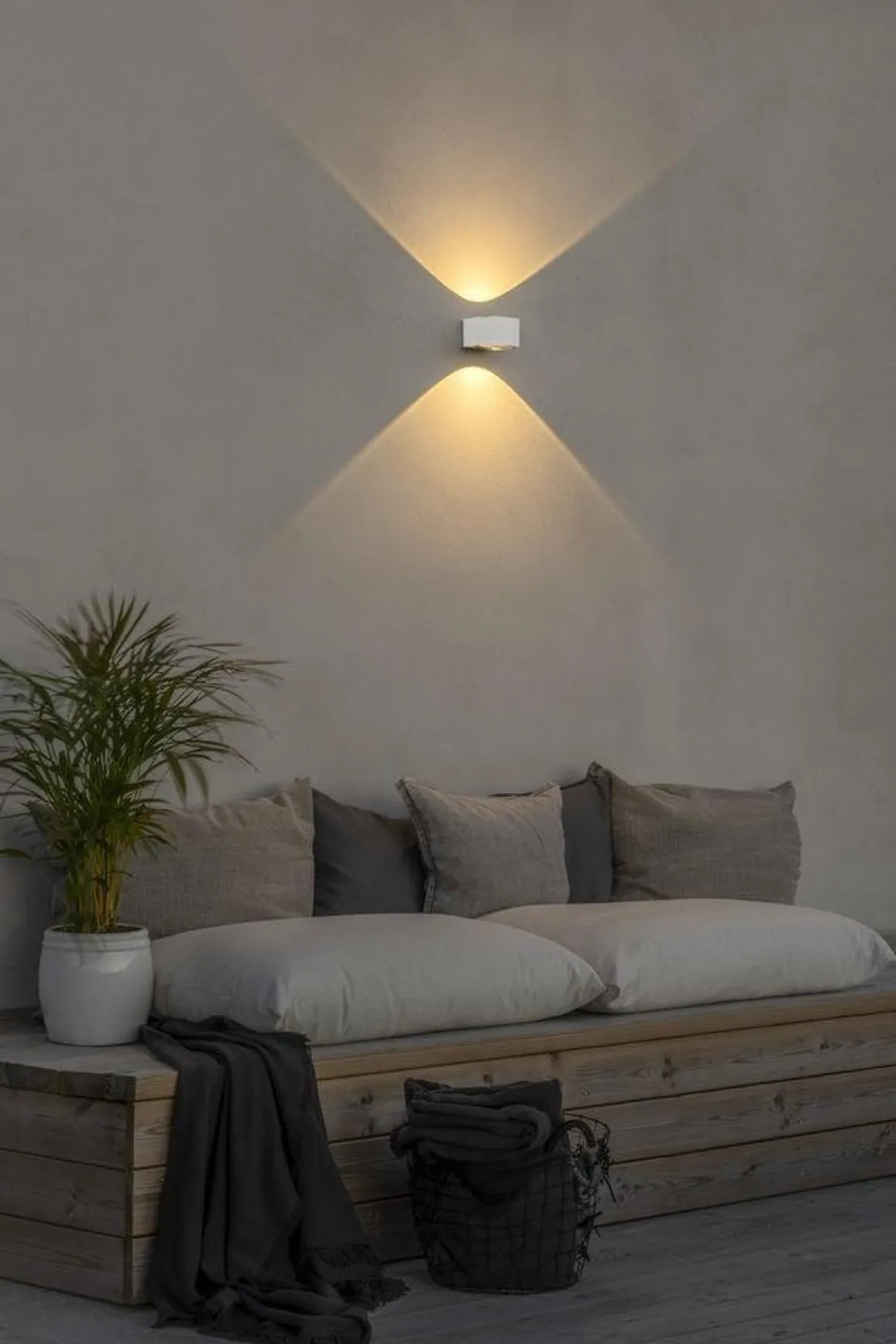 Gela er en moderne vegglampe som finnes i flere modeller, som lyser ned eller opp og ned.