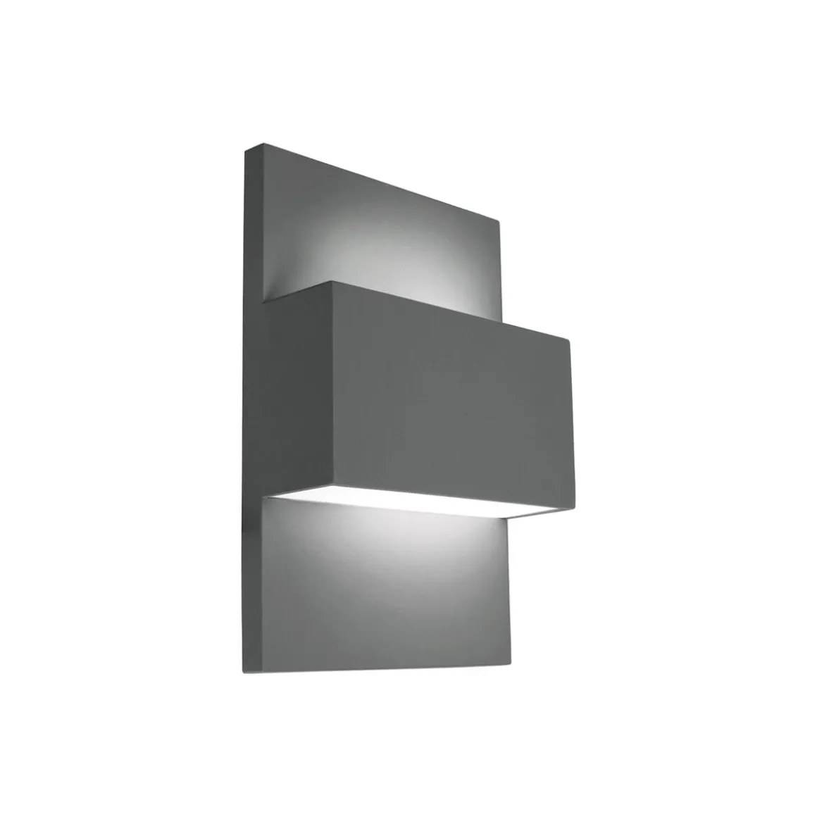 Moderne og stilren vegglampe i aluminiumstøp. Indirekte opp og ned lys. Geneve leveres i fargene aluminium, grafitt og hvit.