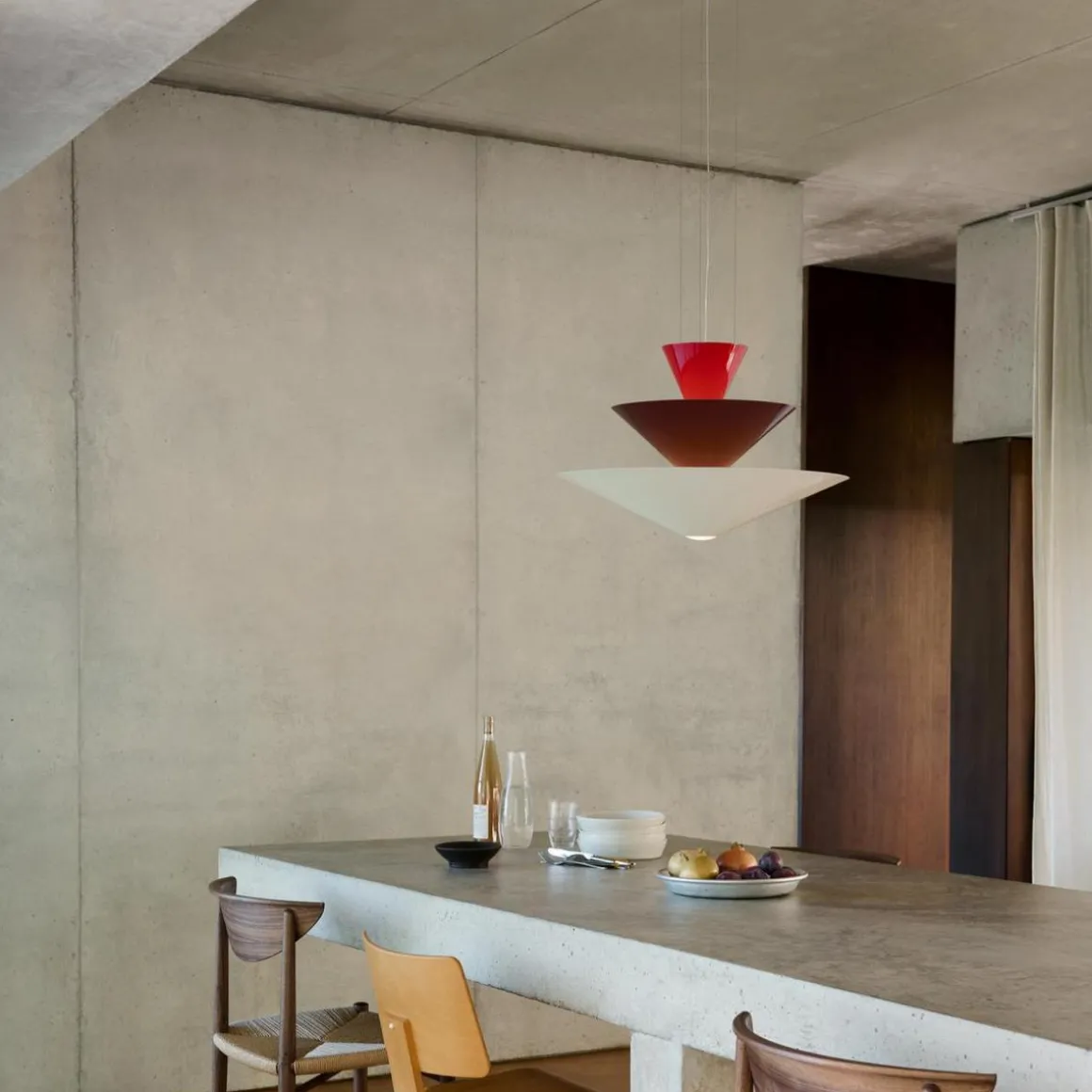 Med inspirasjon fra Gio Pontis Murano-lysekrone formidler Gio-lysekronen den samme slående uttrykksformen, samtidig som den fokuserer på grunnleggende geometriske former og livlige fargekombinasjoner.