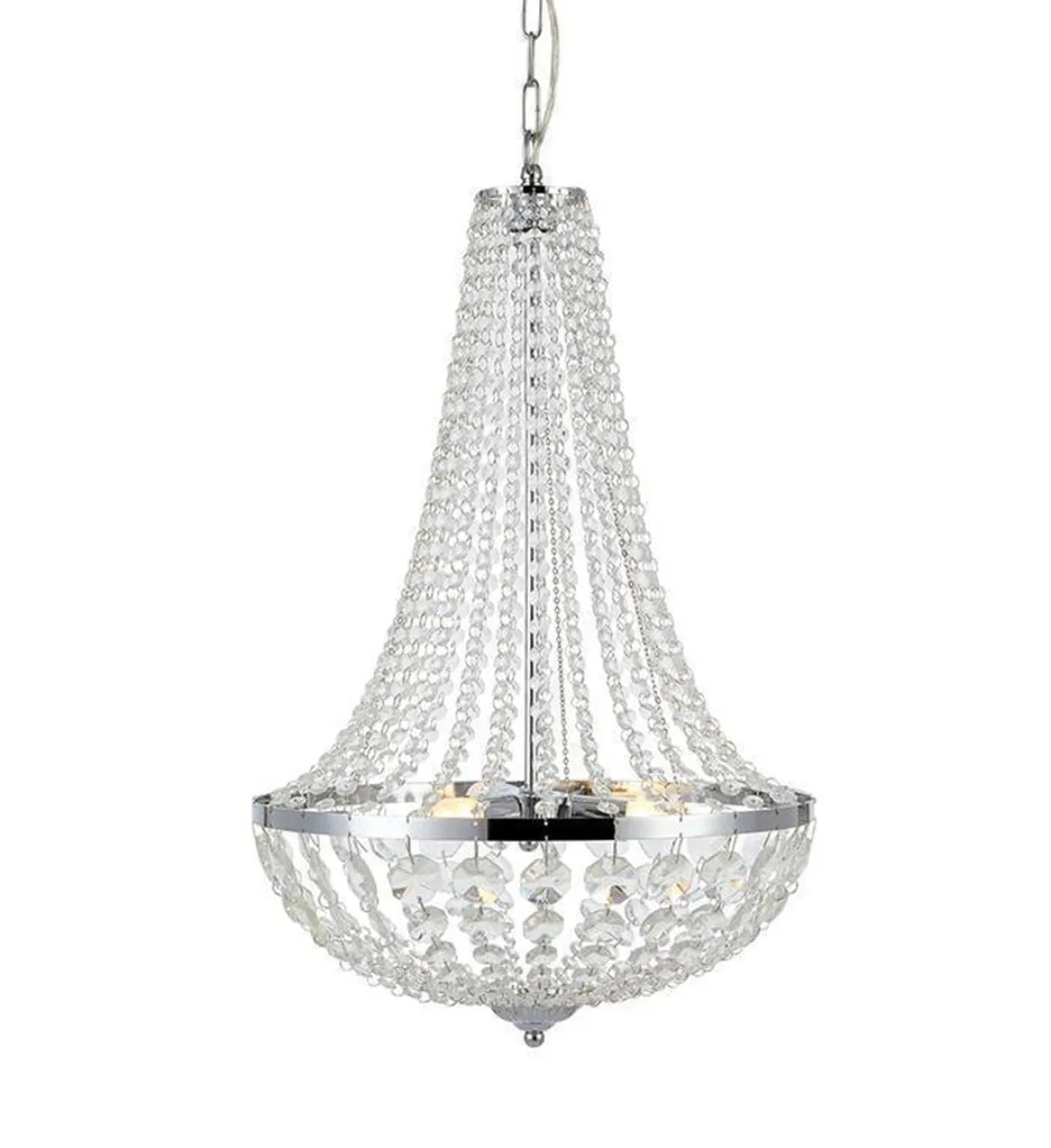 Krystallkrone i krom metall og glass prismer. Godkjent for bad. IP44.