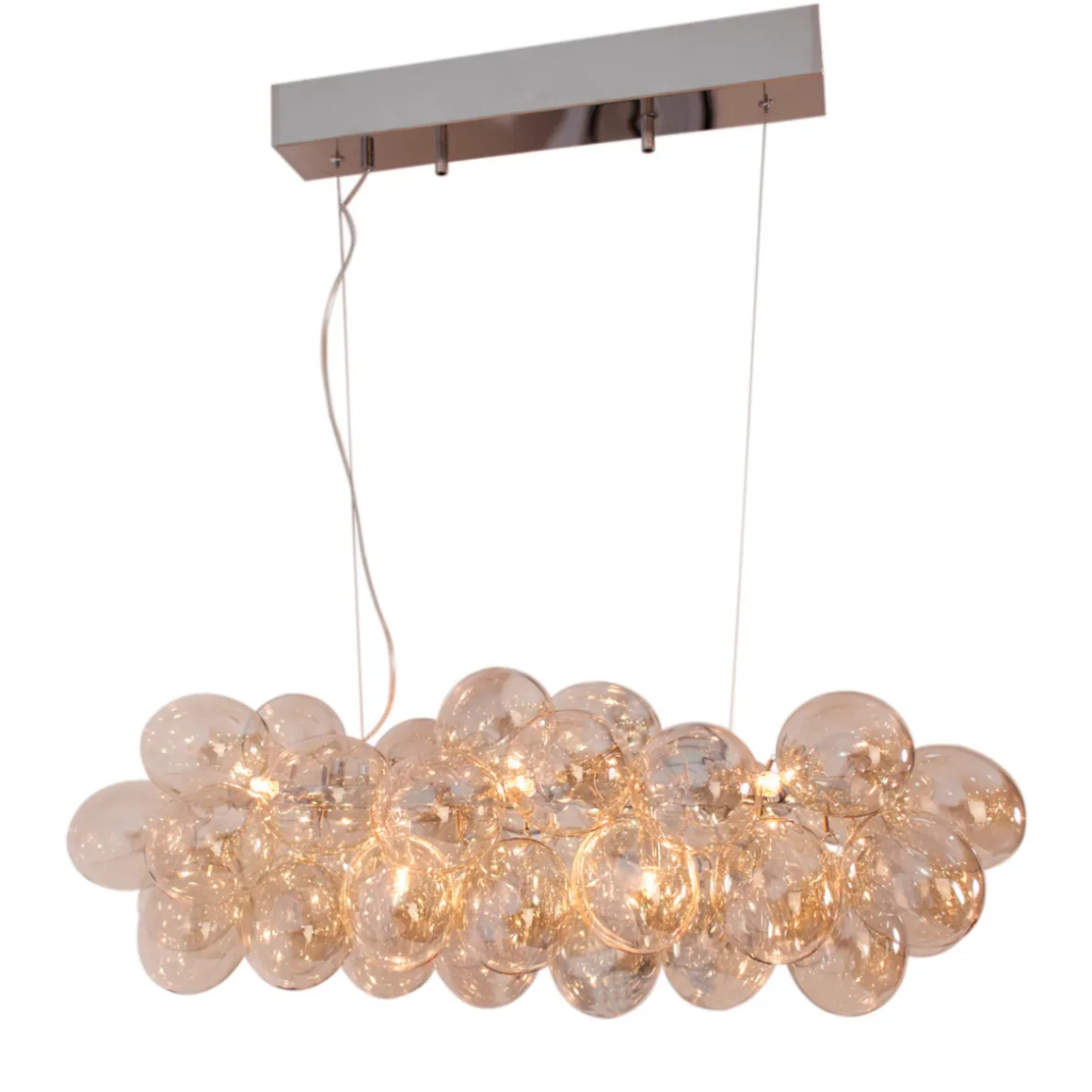 Gross Bar er en vakker og eksklusiv takpendel bestående av 38 glasskuler i klynger. Lampen kan henges over et spisebord, eller hvorfor ikke over konferansebordet? Lampen er 80 cm lang. Du behøver 8 stk lyspærer med G9-sokkel til lampen.