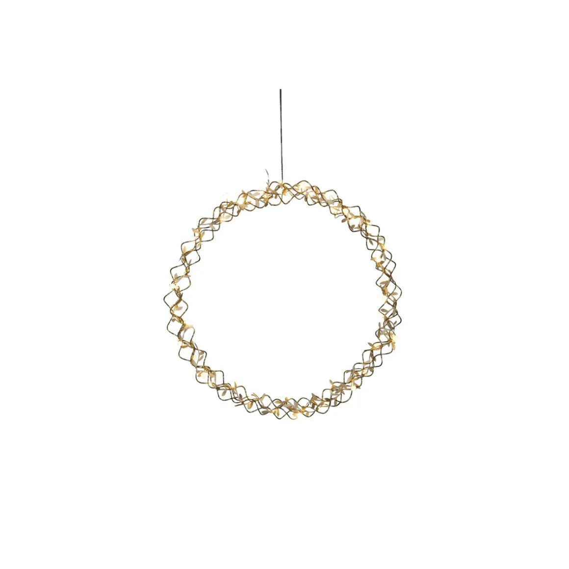 Gullfarget metallkrans med varme farget LED gjennomsiktig ledning.