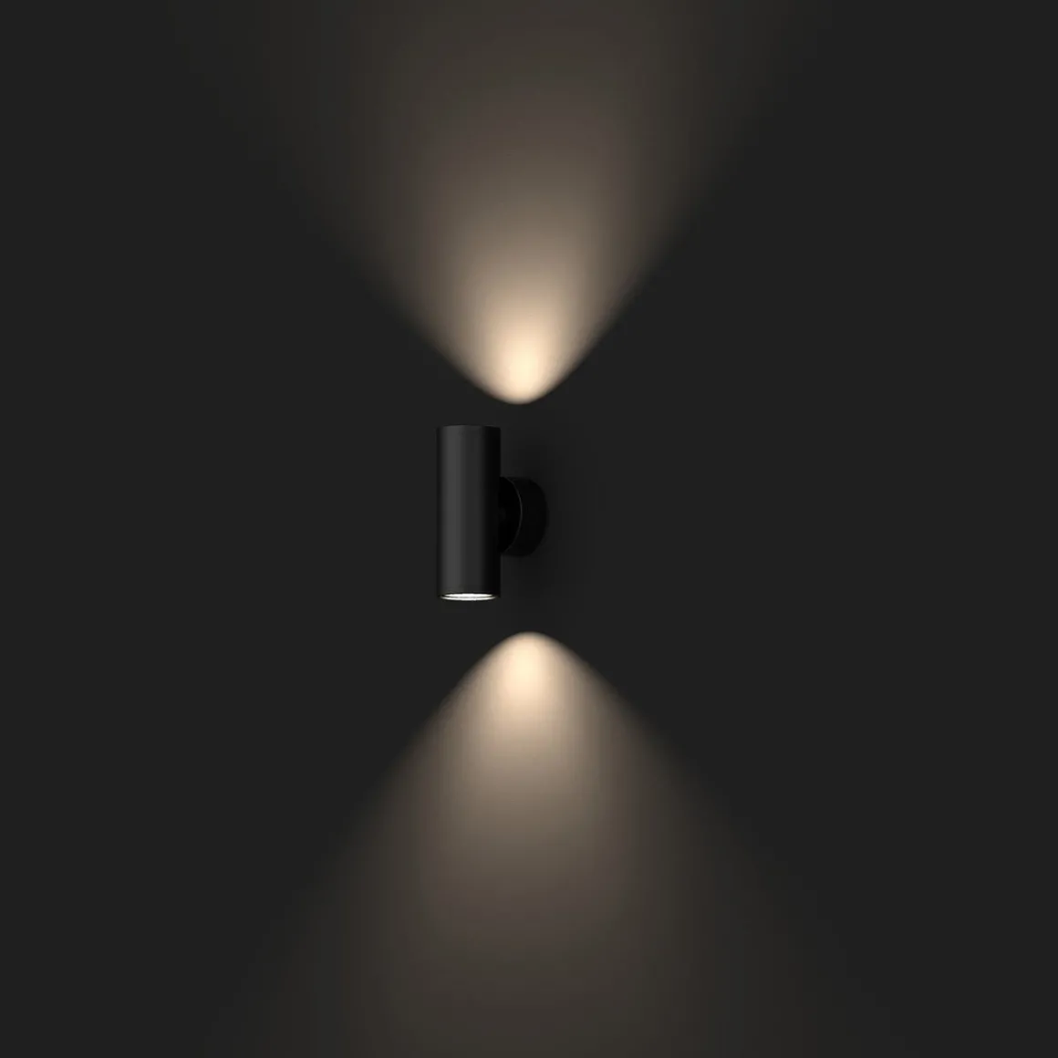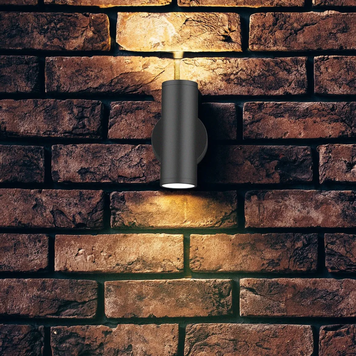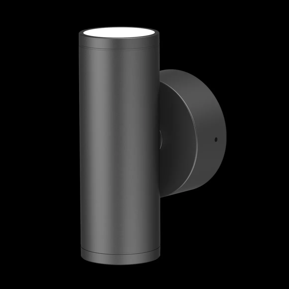 Gyre opp og ned er en sylinderformet vegglampe med opp / nedlys for utendørsbruk.