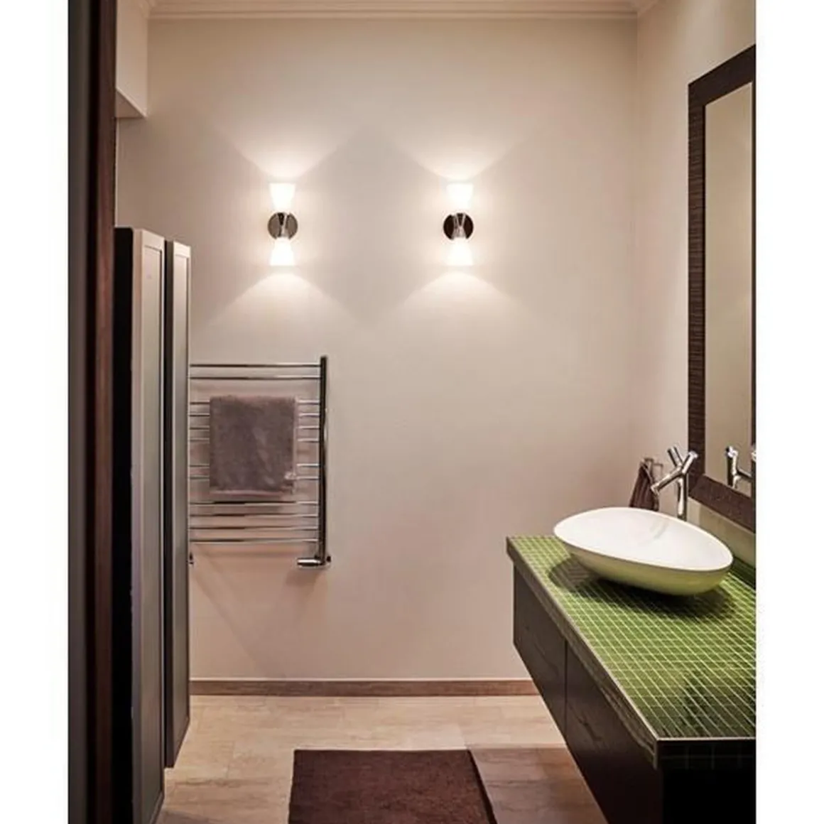 Dekorativ vegglampe fra Hersdal med dobbelt lys og nydelige kromdetaljer.