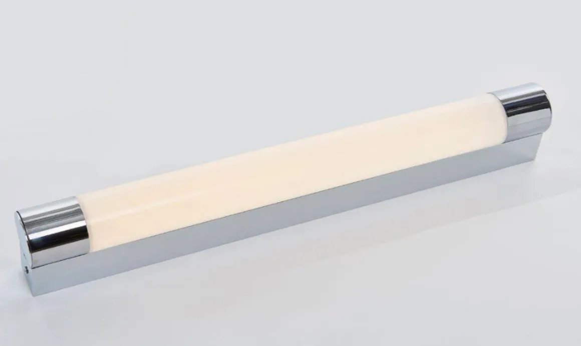 Nydelig vegglampe med stikkontakt som kan monteres over speilet.