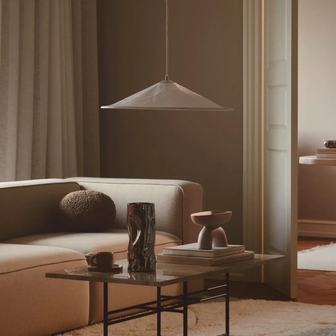 Hill er en stor, geometrisk lampeskjerm som fyller rommet uten å blokkere sikten. Hill er skapt av den danske designeren Asger Risborg, og er lett som en sky, men skarp som en stein. En lampe som er både kompleks og enkel samtidig som den skaper et veldig mykt lys som sprer seg ut i rommet på en rolig og ensartet måte.