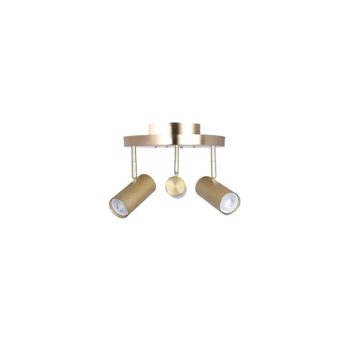 Hubble er et moderne tak med rørformede og ribbede metallskjermer. Skjermen kan vinkles vertikalt og sideveis. Lampen er laget av børstet messingfarget metall.