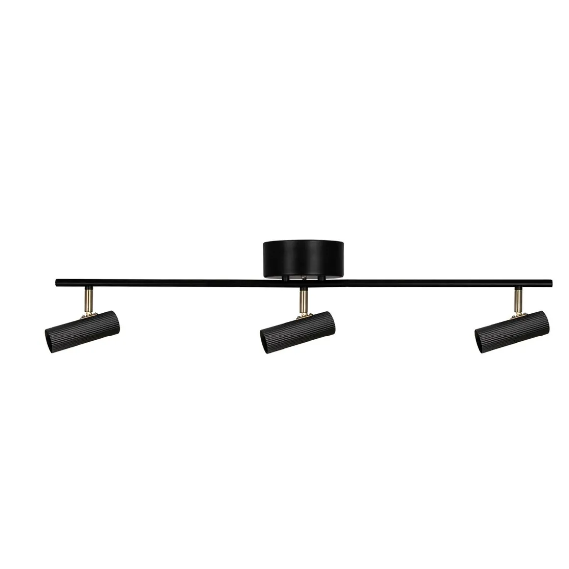 Hubble er et moderne tak med rørformede og ribbede metallskjermer. Skjermene kan vinkles vertikalt og sideveis. Lampen er laget av mattsort lakkert metall med detaljer i messingfarget metall. Den horisontale metallstangen er 80 cm lang og takkoppen er 13 cm i diameter.