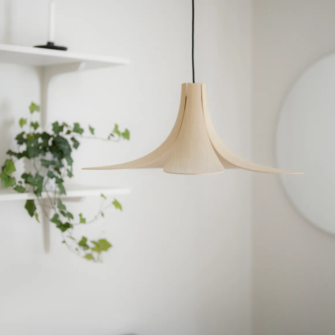 Jazz-lampeskjermen kan brukes med et pendeloppheng over spisebordet, på et Willow-veggfeste, en gulvlampe eller på en bordlampe