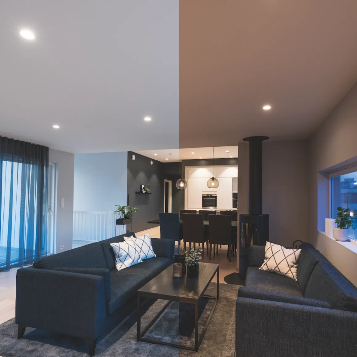 Spottene er utstyrt med dim-to-warm-funksjon som gjør at lyset får en varmere og lunere farge når det dimmes ned.