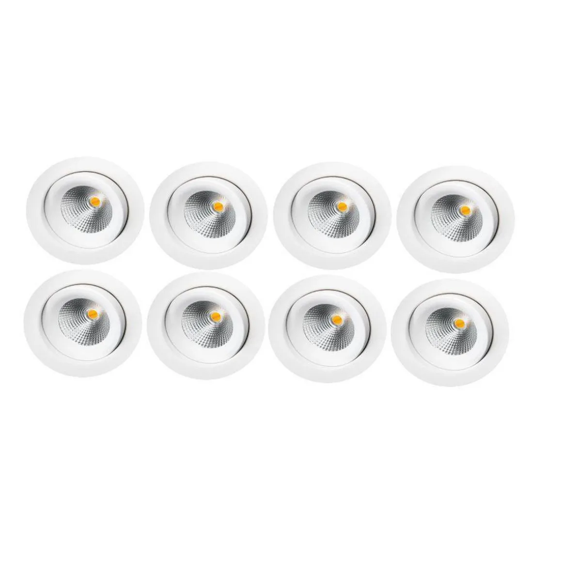 Kostnadseffektiv downlight for innendørsbruk med 42° lysspredningsvinkel og 30° vipp i to retninger. Produsert i trykkstøpt, pulverlakkert aluminium med hvit overflate, og skjerm i glass. Integrert, effektiv LED-chip med god lyskvalitet. Dimbar med faseavsnittdimmer