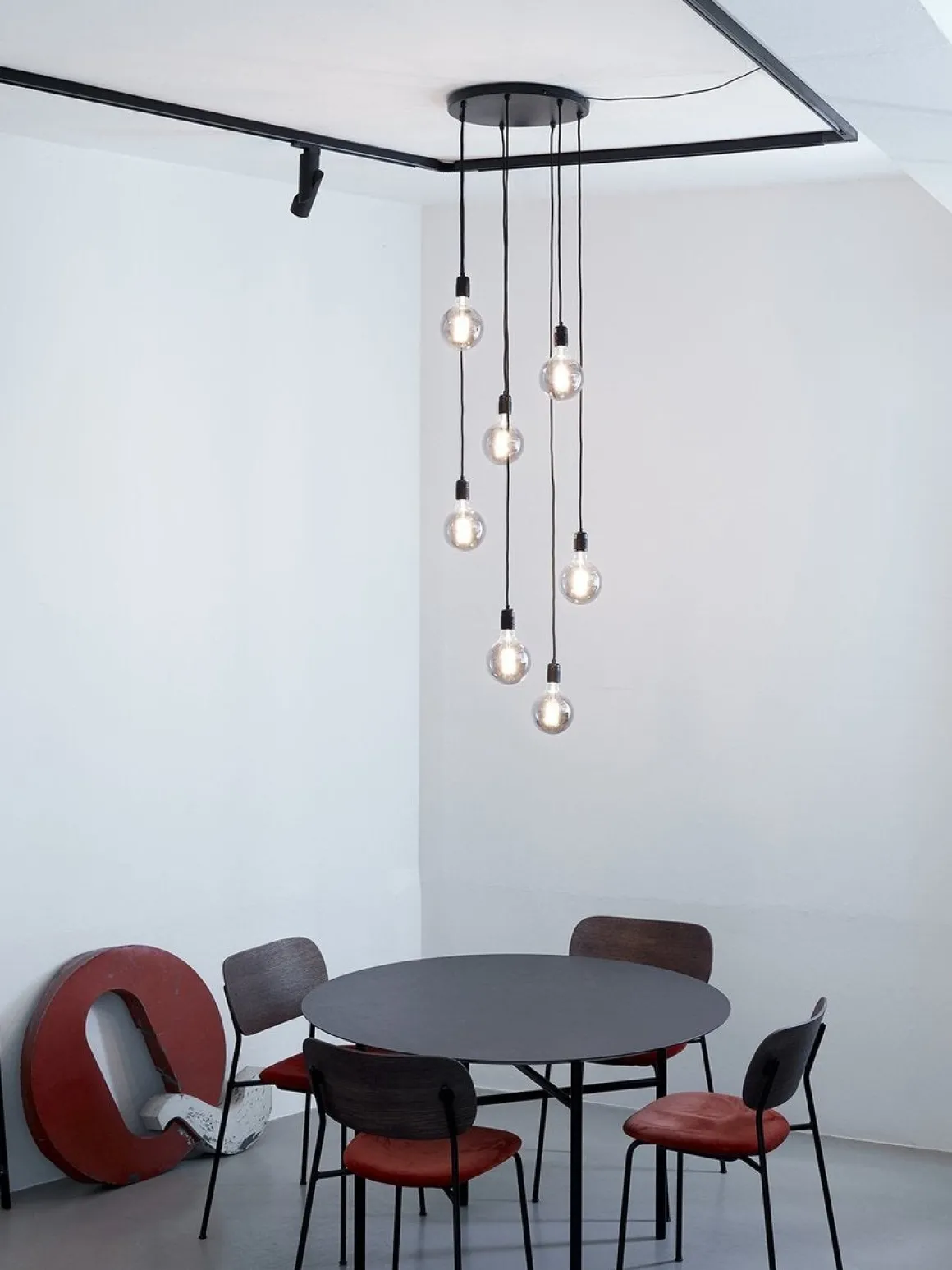 Stilren takpendel som setter lyspæren i fokus. Kjøp gjerne dekorative lyspærer for at lampen skal bli komplett. Hver ledning kan reguleres.