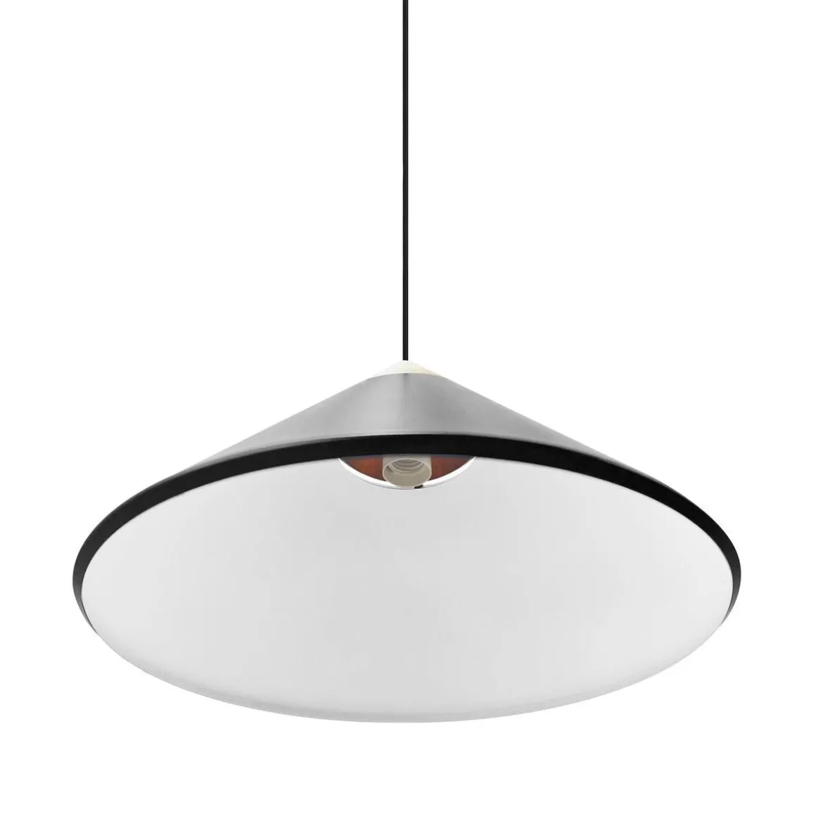 Kinto er designet av Bjørn + Balle i et moderne og minimalistisk design. Den kjegleformede skjermen er utført i metall med en elegant topp i mørkt tre og detaljer i polert messing. Lyset skinner gjennom åpningen på toppen av skjermen og skaper en vakker lyseffekt. Perfekt over spisebordet eller kjøkkenbordet.