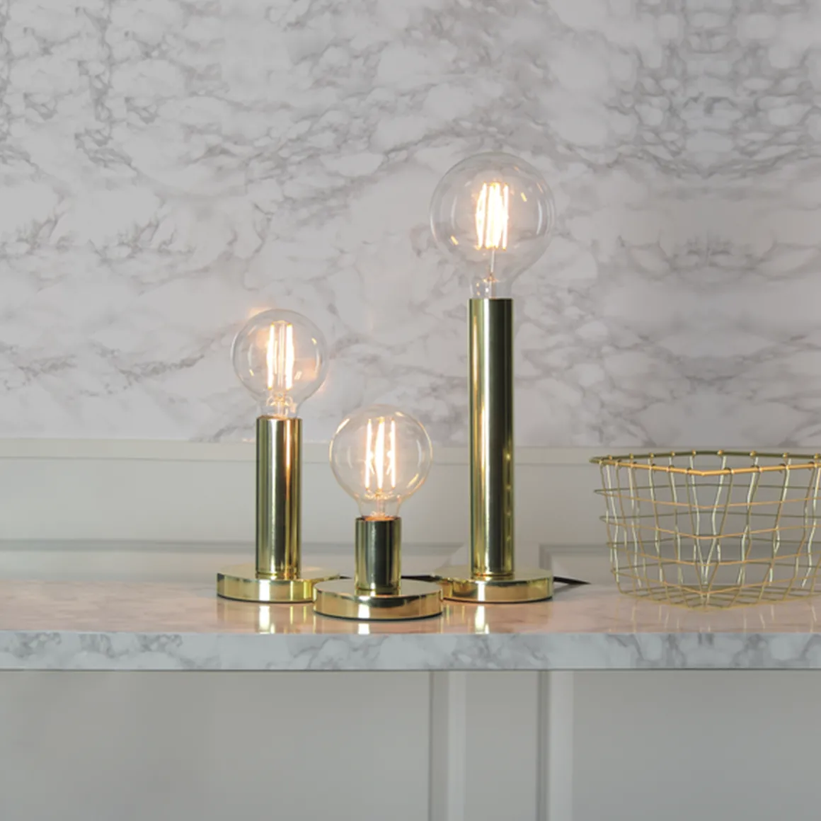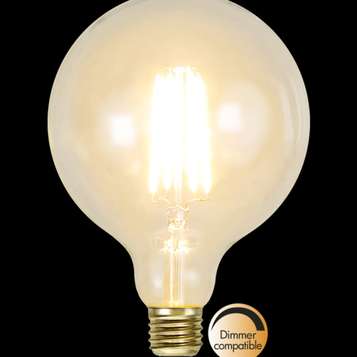 Varmhvit og dimbar pære globe pære som er 12,5cm i diameter.