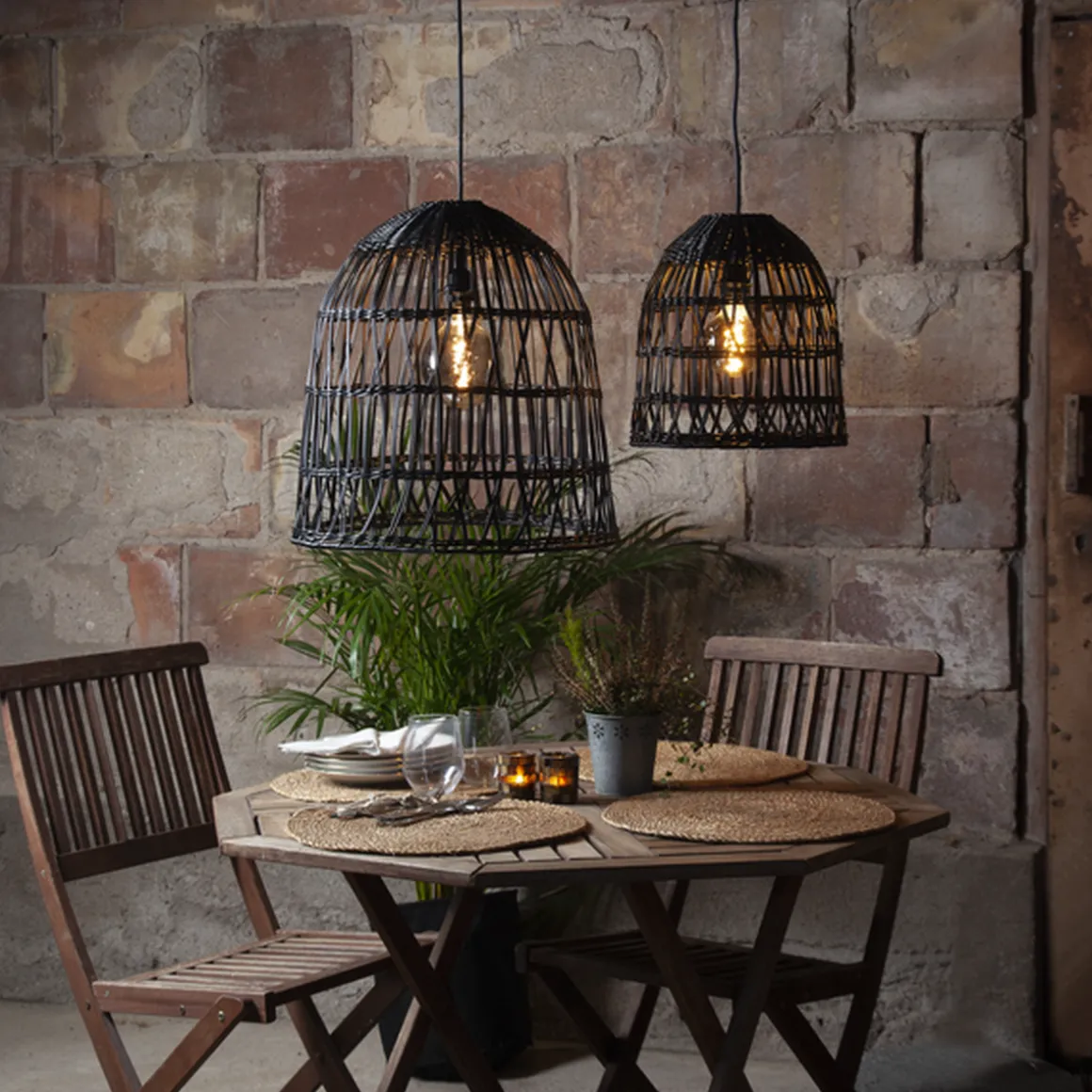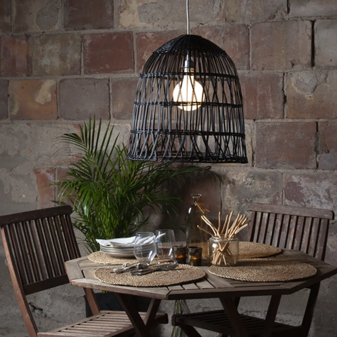 Nydelig lampeskjerm i kunstrotting som er egnet for utendørsbruk. Lampeskjermen er 33 cm høy og 30 cm i diameter.