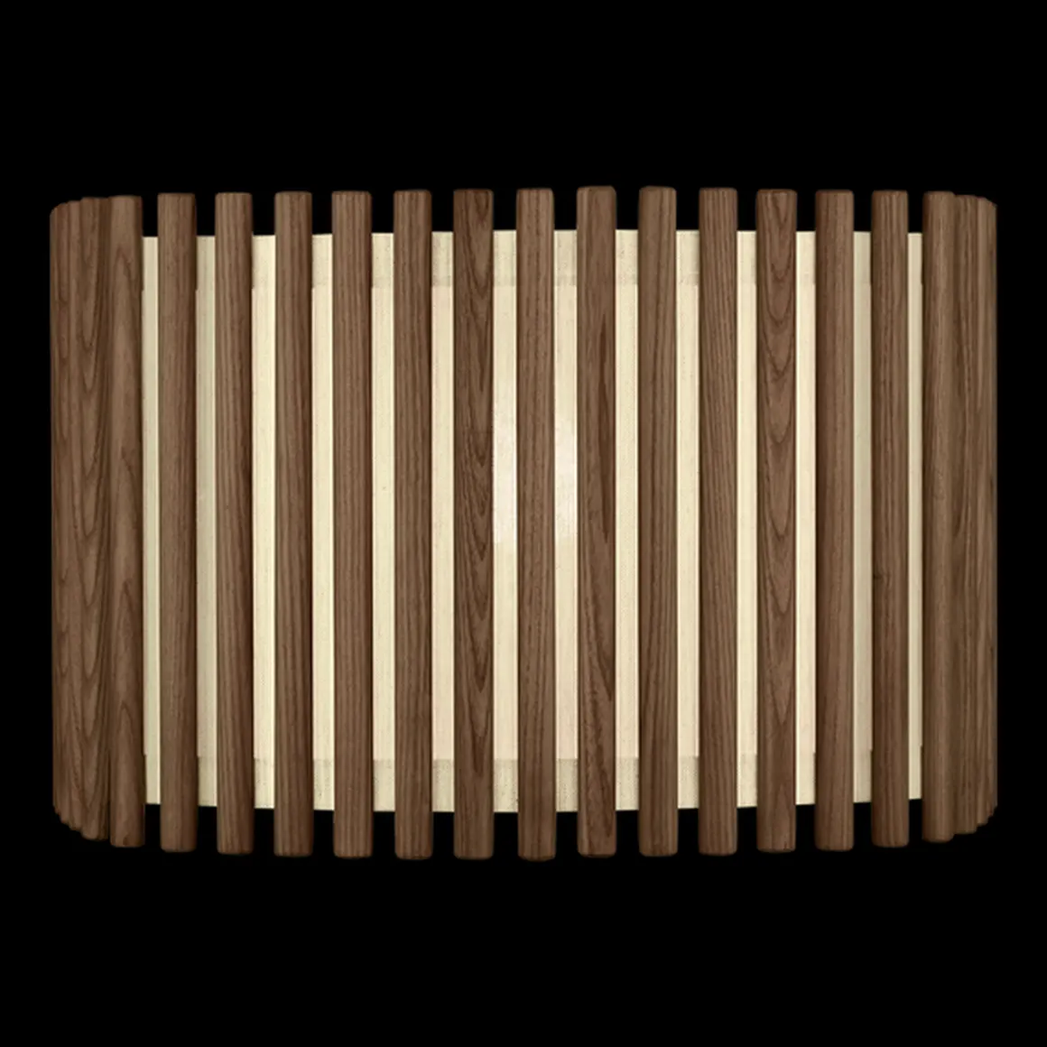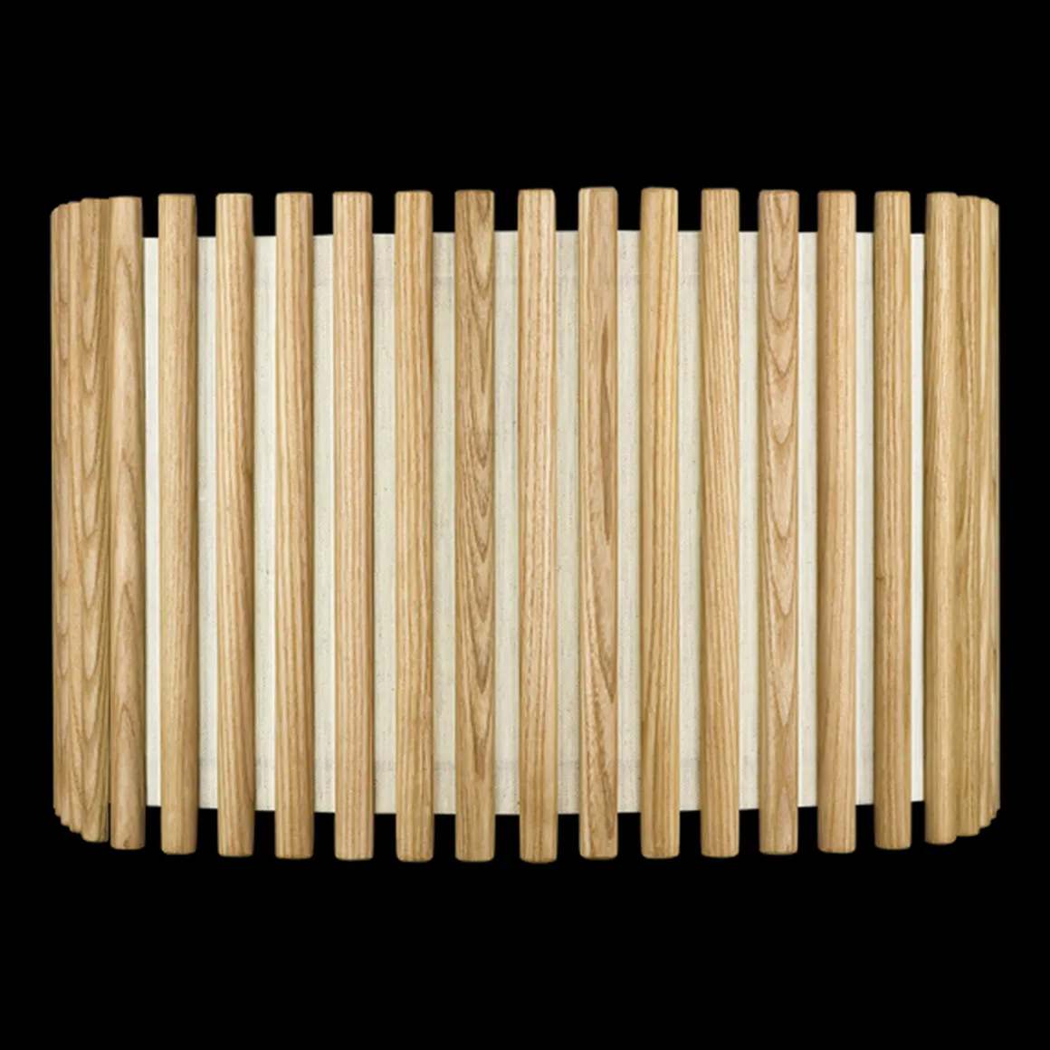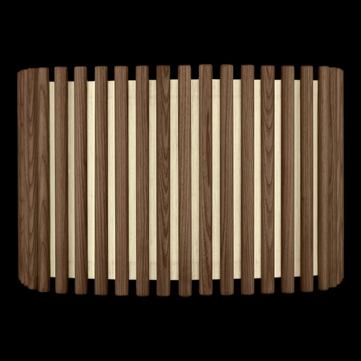 Komorebi-kolleksjonen består av flere lampeskjermer laget av trelameller og tekstil. Kombinasjonen av tredetaljer og tekstil bidrar til å jorde hjemmet og forvandler atmosfæren til en trøstende og oppløftende ro.