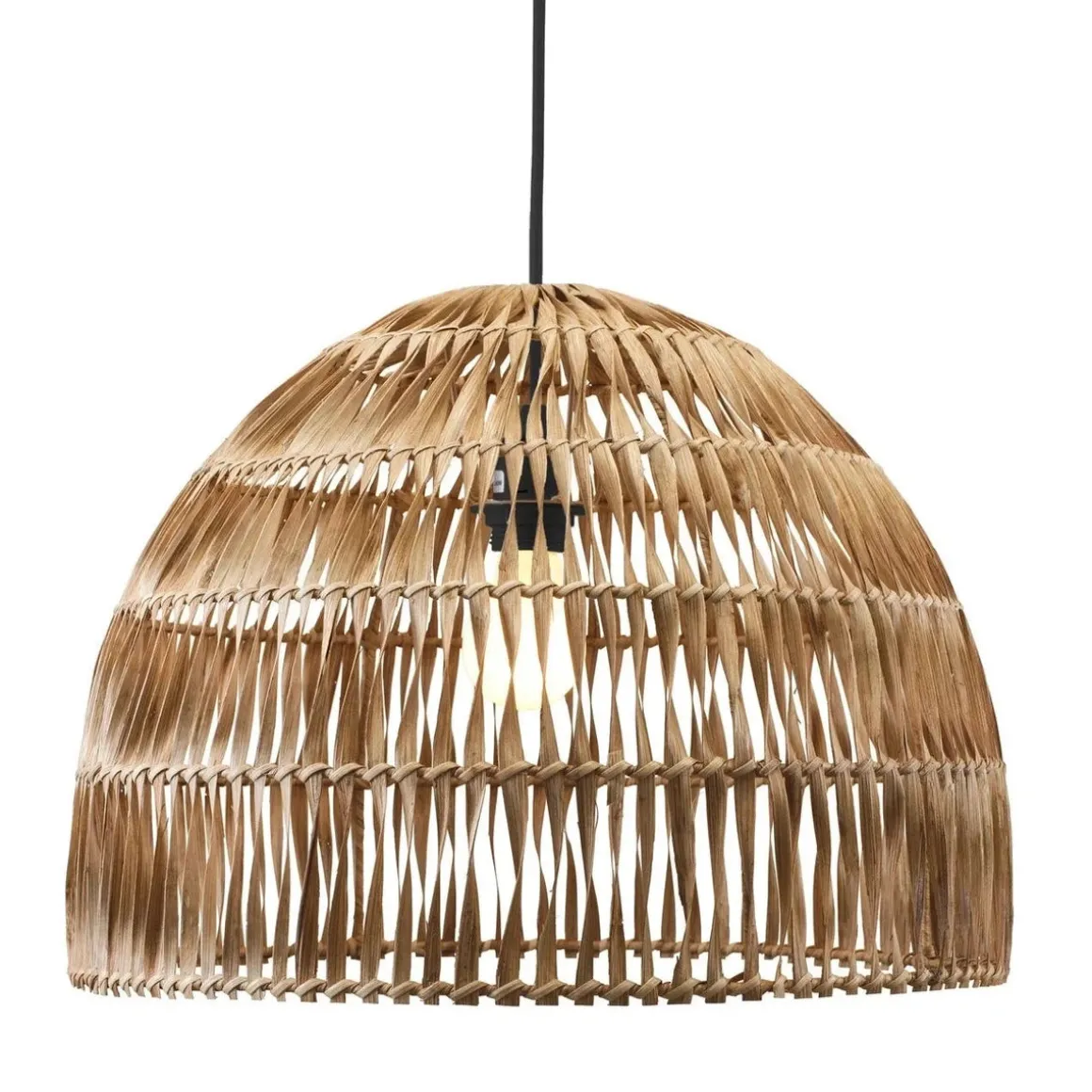 Taklampe Lace i vridd rotting. En håndlaget dekorativ taklampe som skaper en koselig atmosfære og gir en vakker glød når den er tent. Høyde 24cm, bredde 37cm og dybde 37cm. Svart takoppheng med 1,2m ledning inkludert. E27 lampeholder. Maks 40W. Takkontakt og lyskilde medfølger ikke. Naturmaterialet kan endre farge, hver skjerm er håndlaget og det kan være mindre størrelsesavvik.