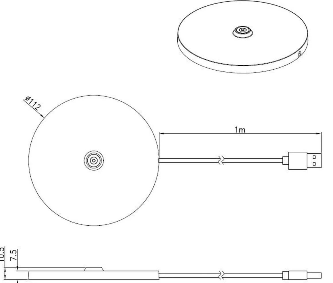 Ladeplate til Iris. Leveres inkl. USB A ledning.