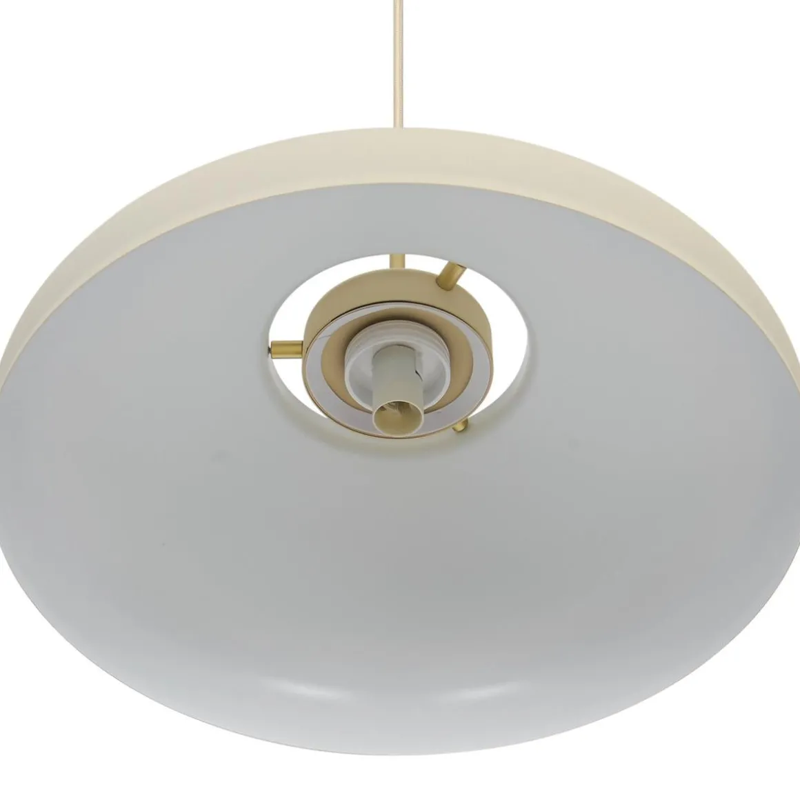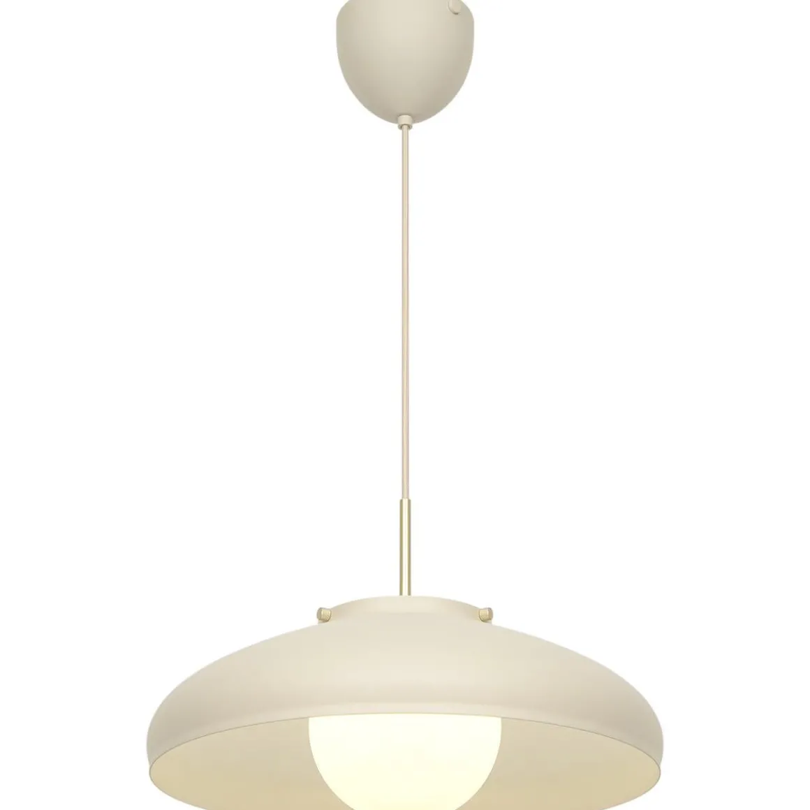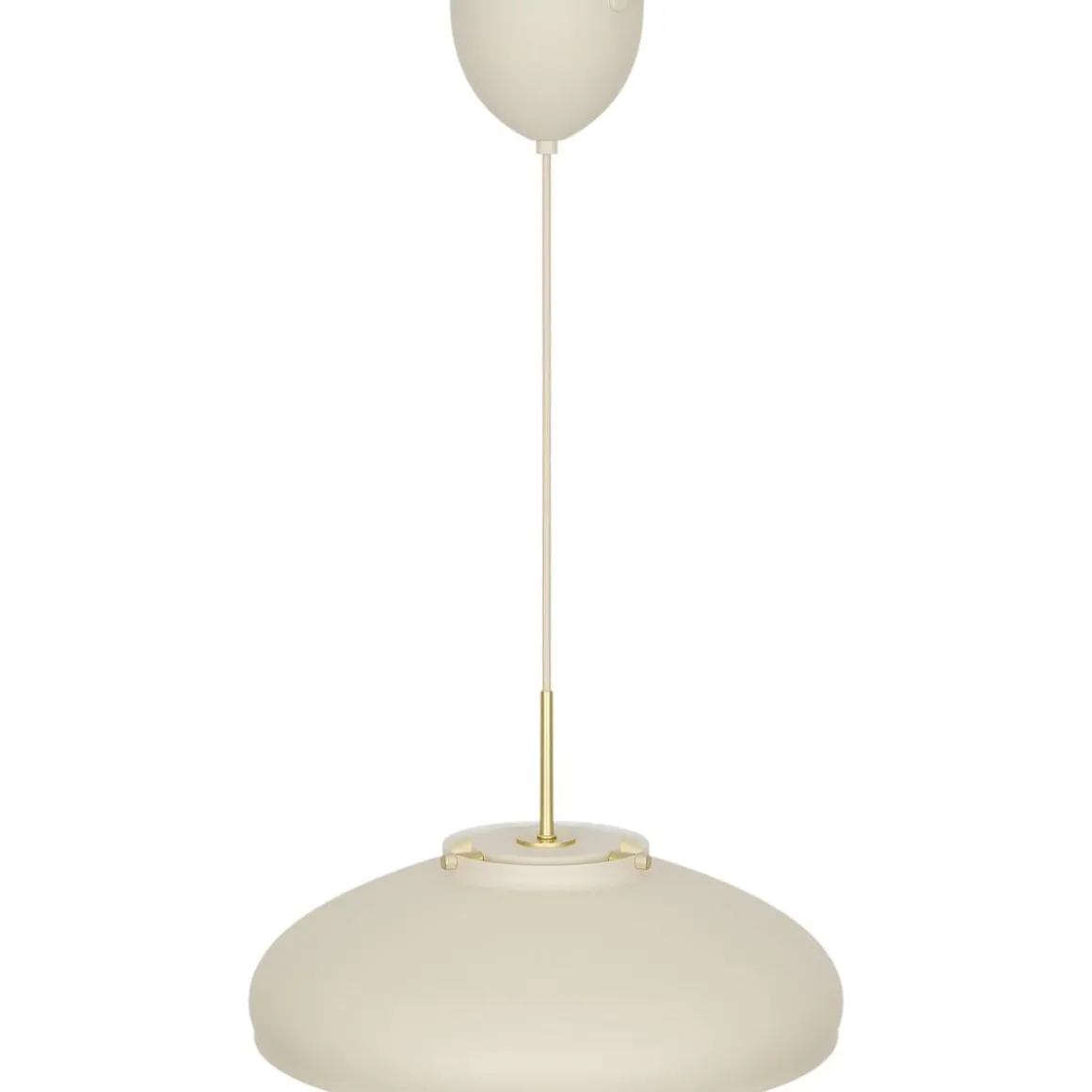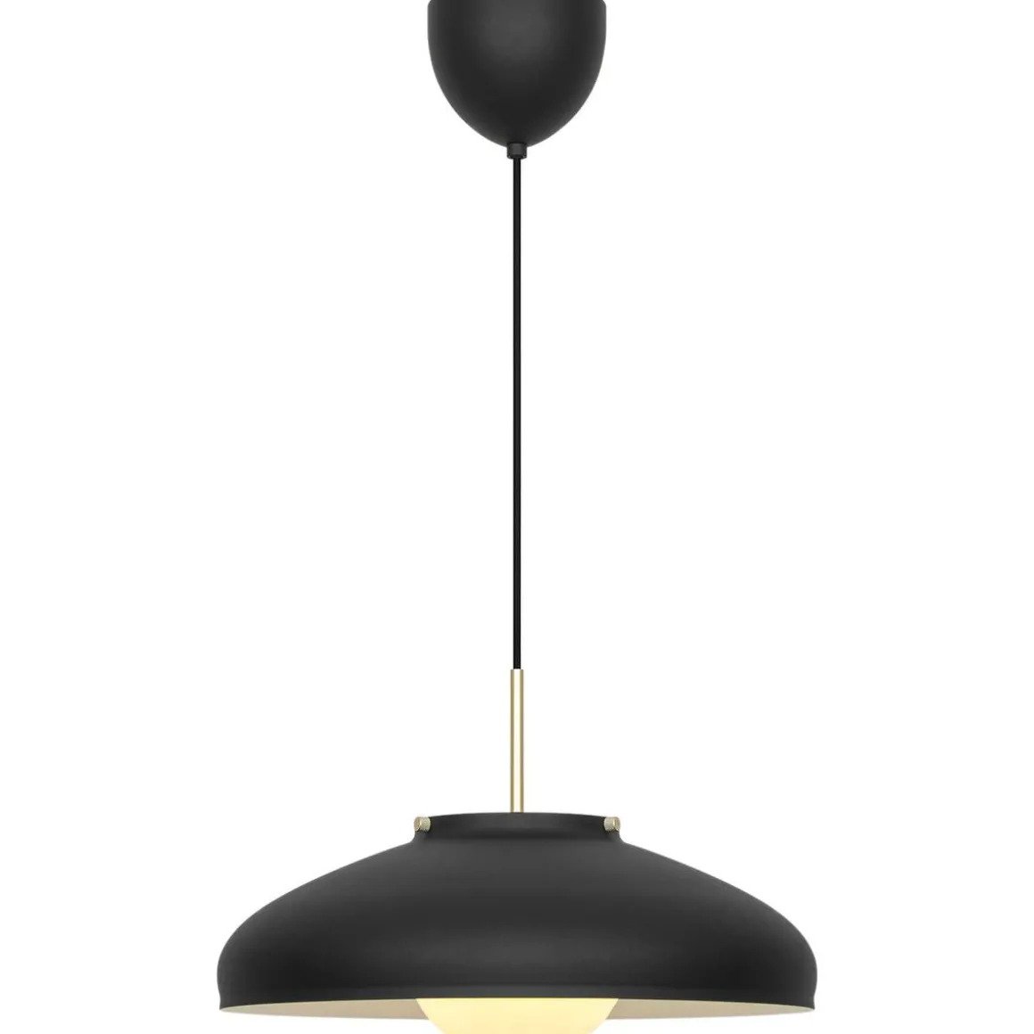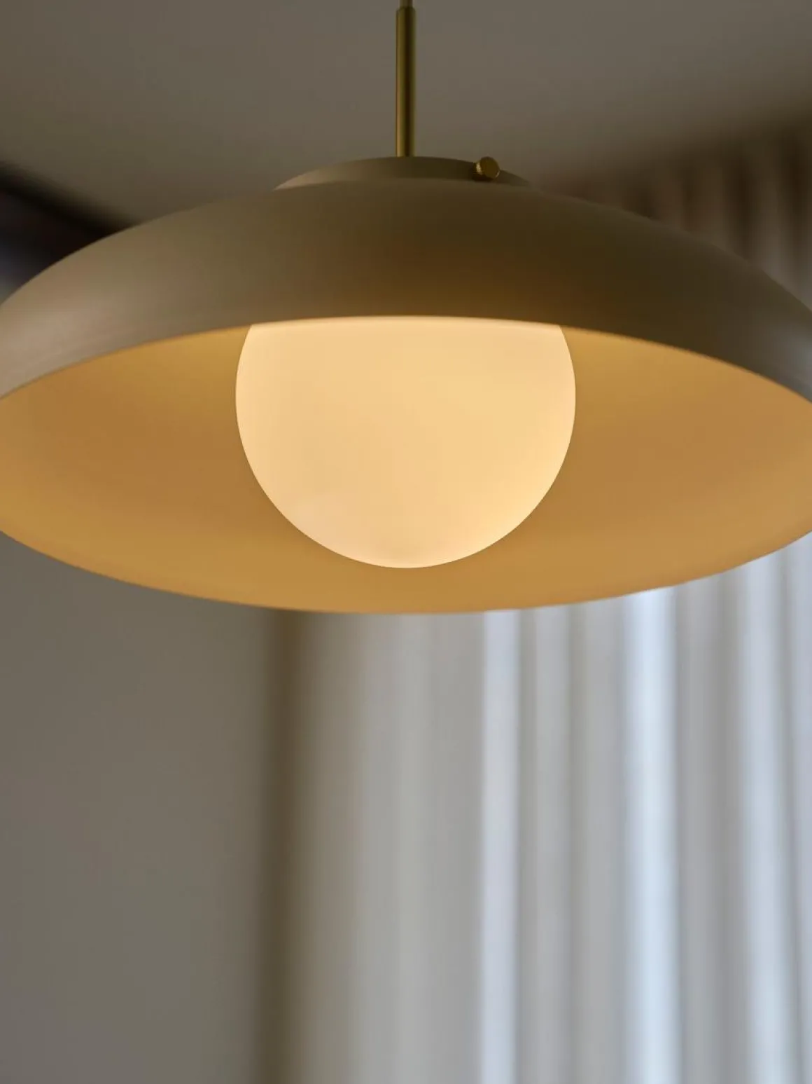 Latif er en moderne og elegant pendellampe designet av den danske designduoen Anker Studio. Skjermen er utført i ru metall med detaljer i børstet messing. Den runde diffusoren i opalglass sikrer et mykt lys som ikke blender, noe som gjør lampen perfekt over spisebordet for å skape et behagelig lys.