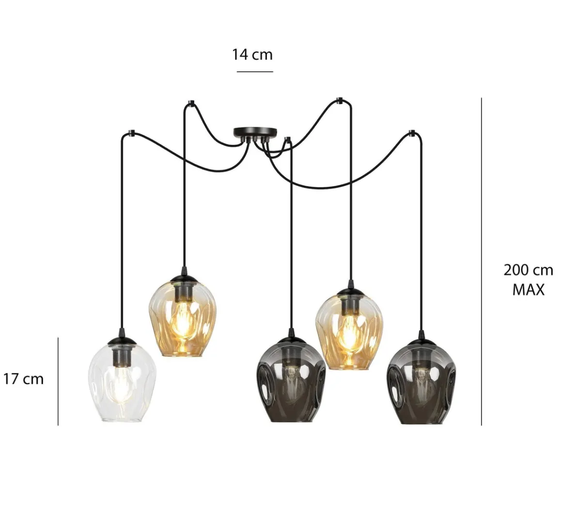 | Lyspærer | 5 stk maks. 60W – ikke inkludert |