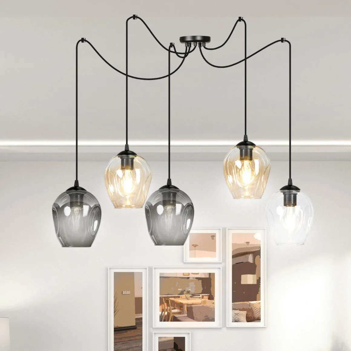 Level er en nydelig pendelserie, som blant annet finnes som 1, 3 eller 5 lys. Modellen er i fargen sort og kan velge mellom klart-, røykfarget- eller amberfarget glass.