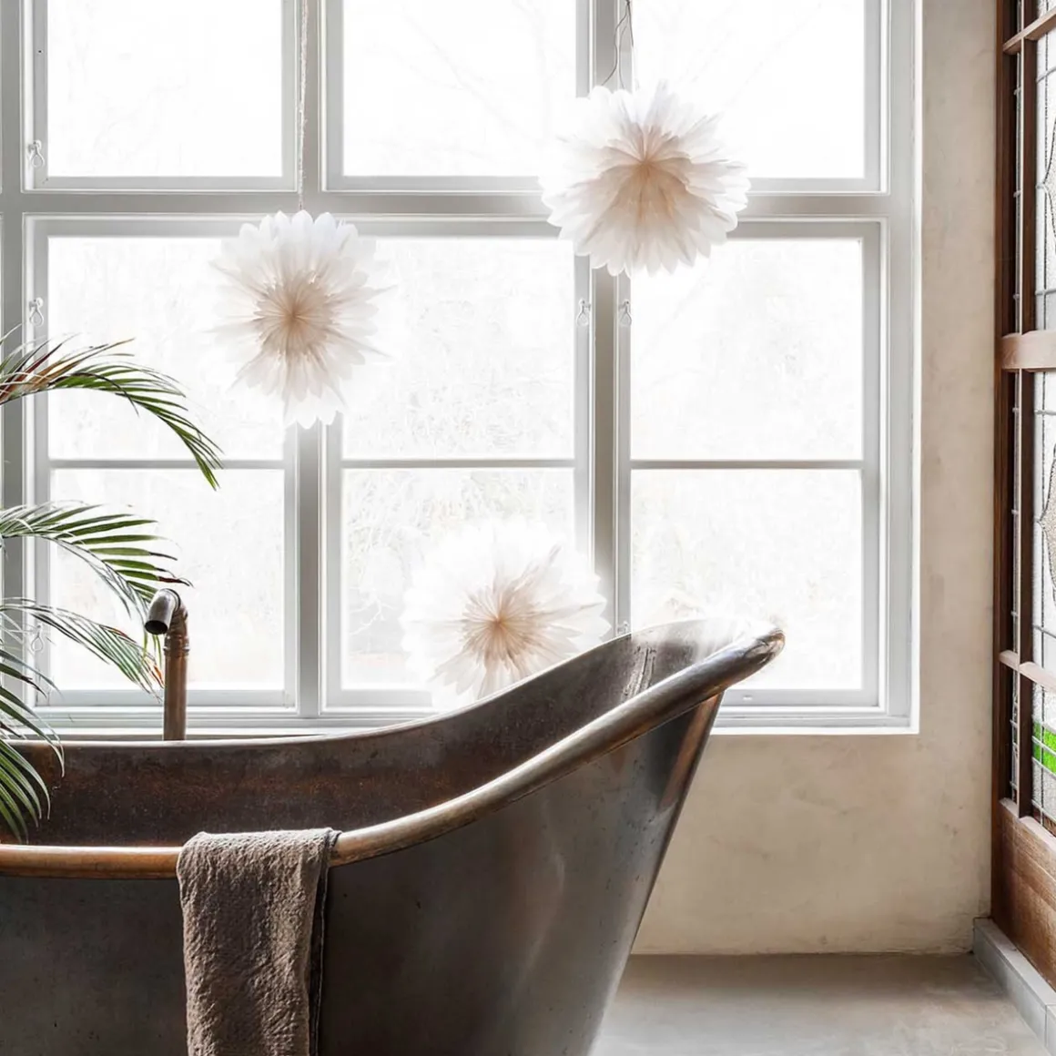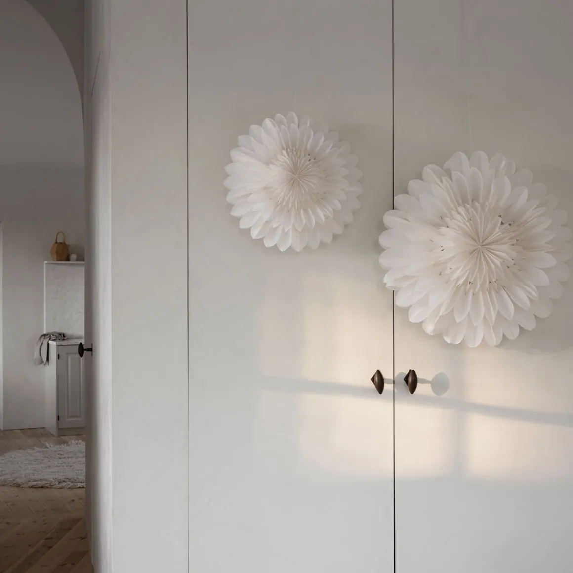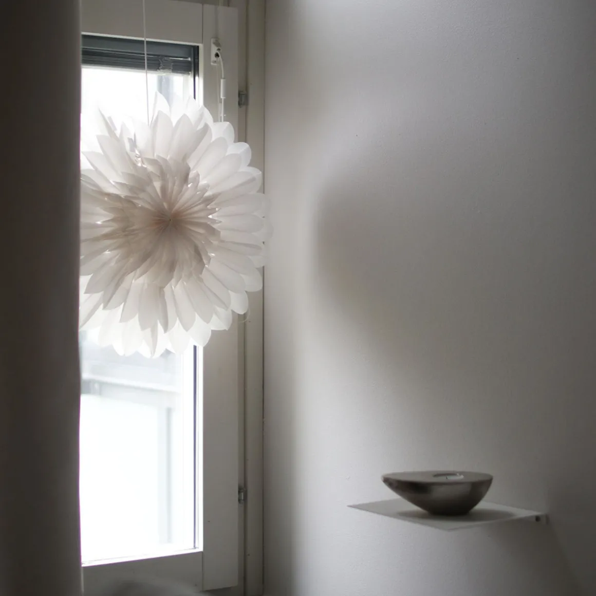 Akkurat som den nydelig duftende lotusblomsten, er denne papirstjernen fra Watt & veke en fryd for sansene. Gjennom det rene papiret skinner denne papirstjernen som en juvél – som en blomstrende knopp fra den populære Snöblomma, og i samme unike stil.