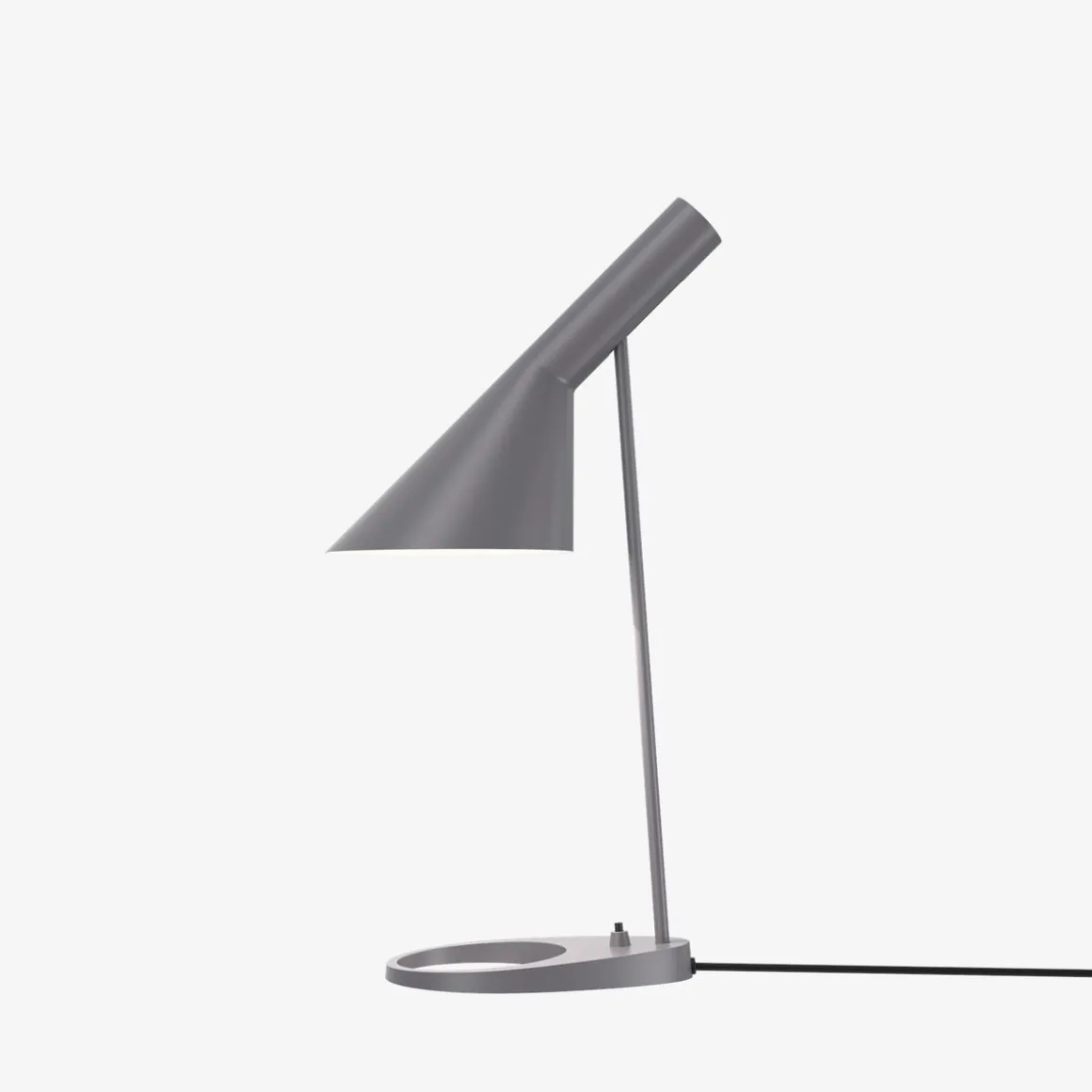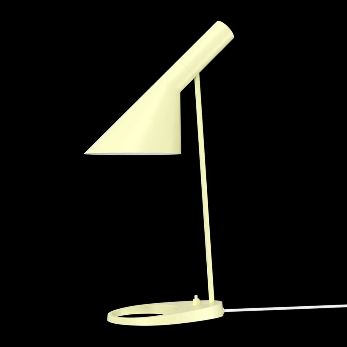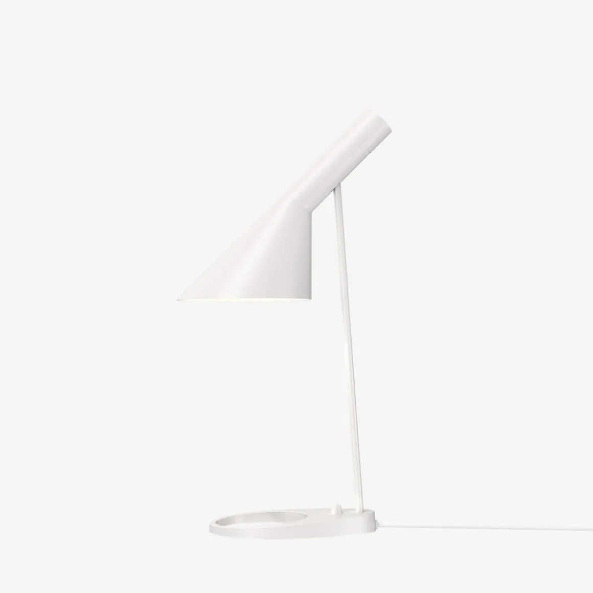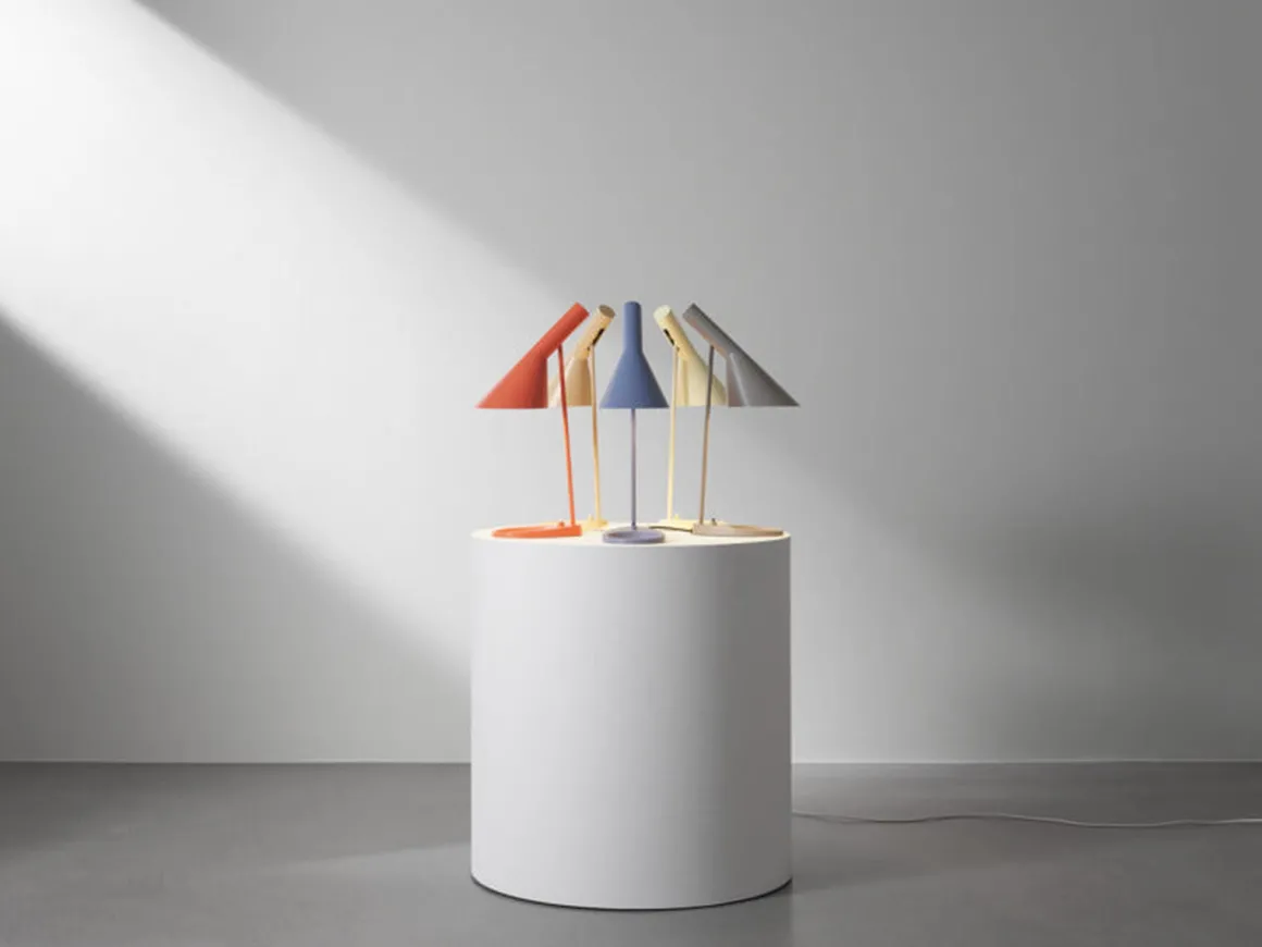 AJ bordlampe fra Louis Poulsen har et ikonisk design med sine karakteristiske former. Lampen har et direkte , retningsbestemt lys. Vinkelen på skjermen kan justeres for å optimalisere lysfordelingen. Skjermen er malt hvit på innsiden for å gi et mykt og komfortabelt lys. Lampen har bryter på lampefoten. Et must for design-interesserte.