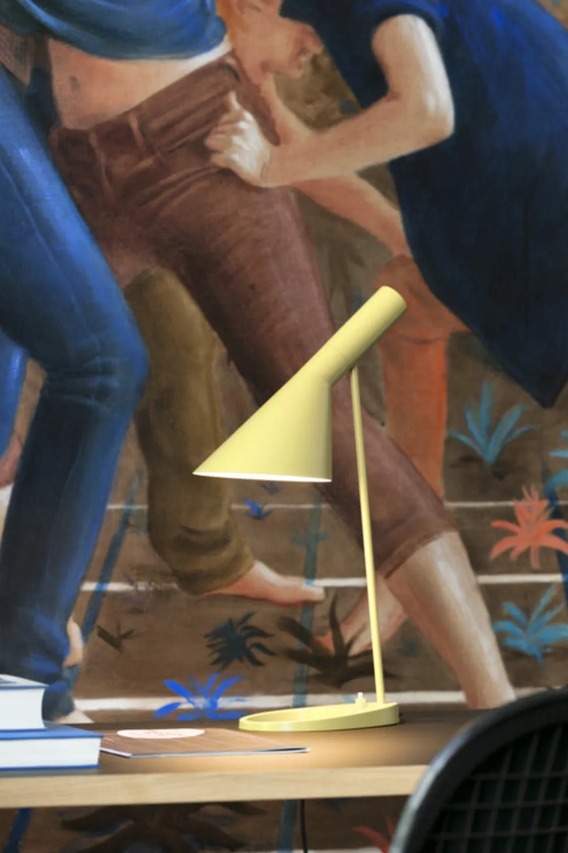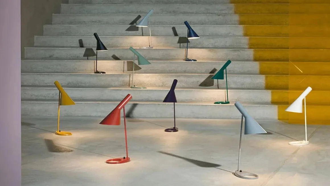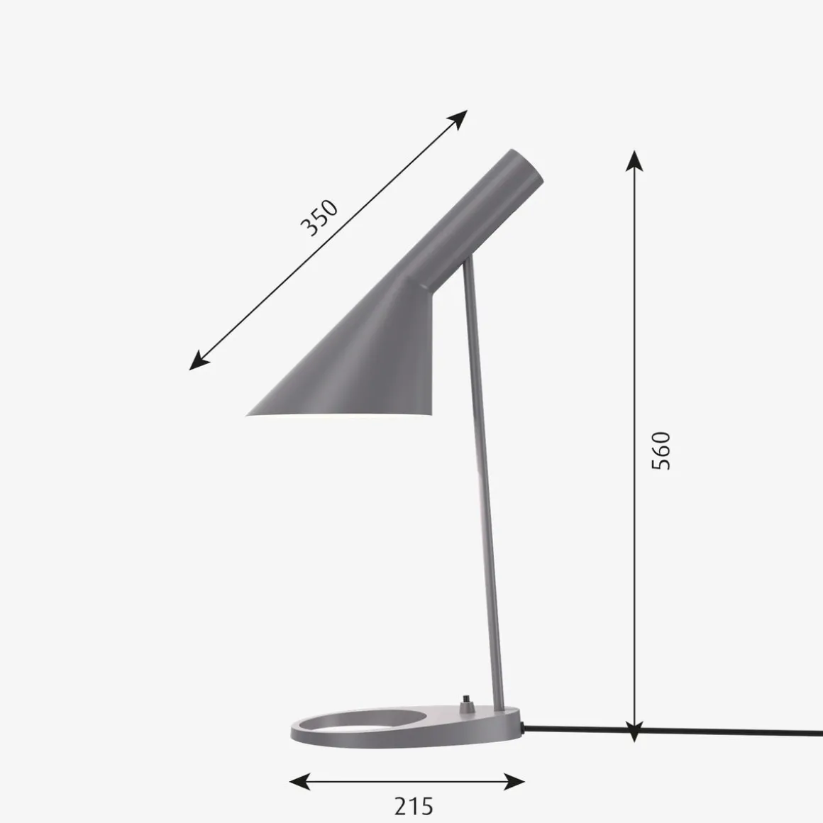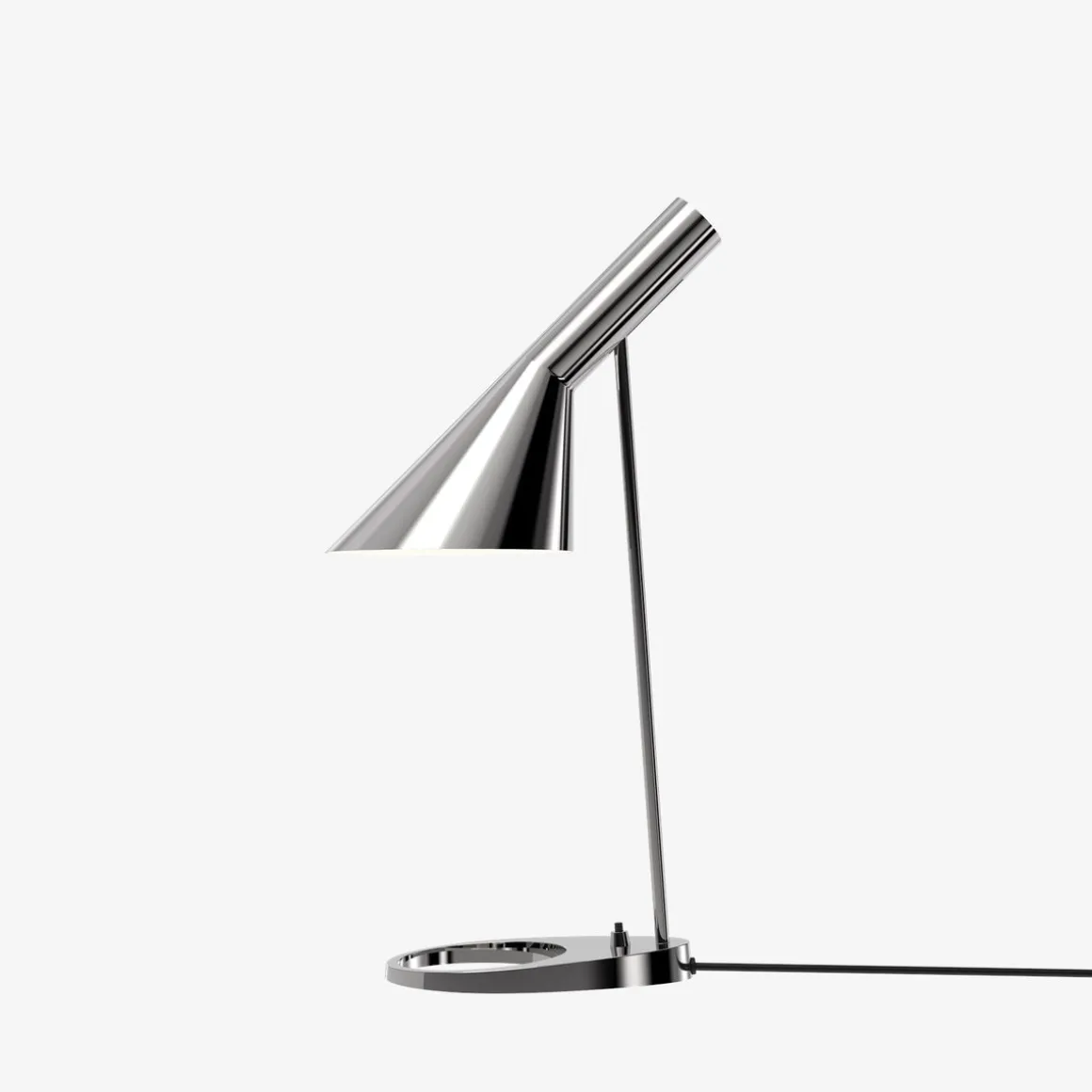 AJ bordlampe fra Louis Poulsen har et ikonisk design med sine karakteristiske former. Lampen har et direkte , retningsbestemt lys. Vinkelen på skjermen kan justeres for å optimalisere lysfordelingen. Skjermen er malt hvit på innsiden for å gi et mykt og komfortabelt lys. Lampen har bryter på lampefoten. Et must for design-interesserte.
