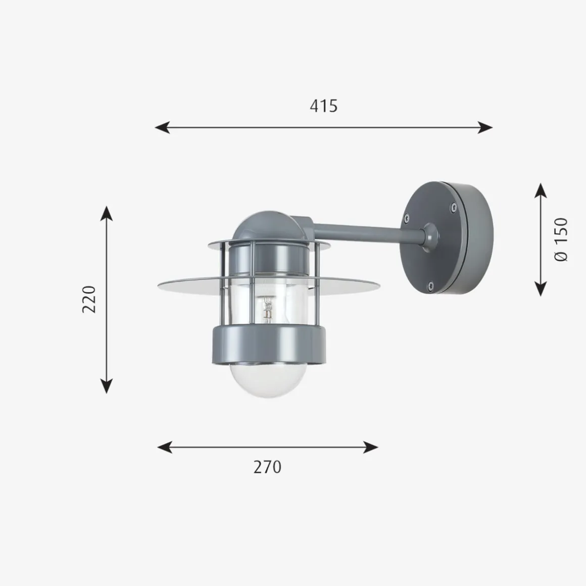 - Dimbar: Ja, ved bruk av dimbar lyspære og ekstern dimmer