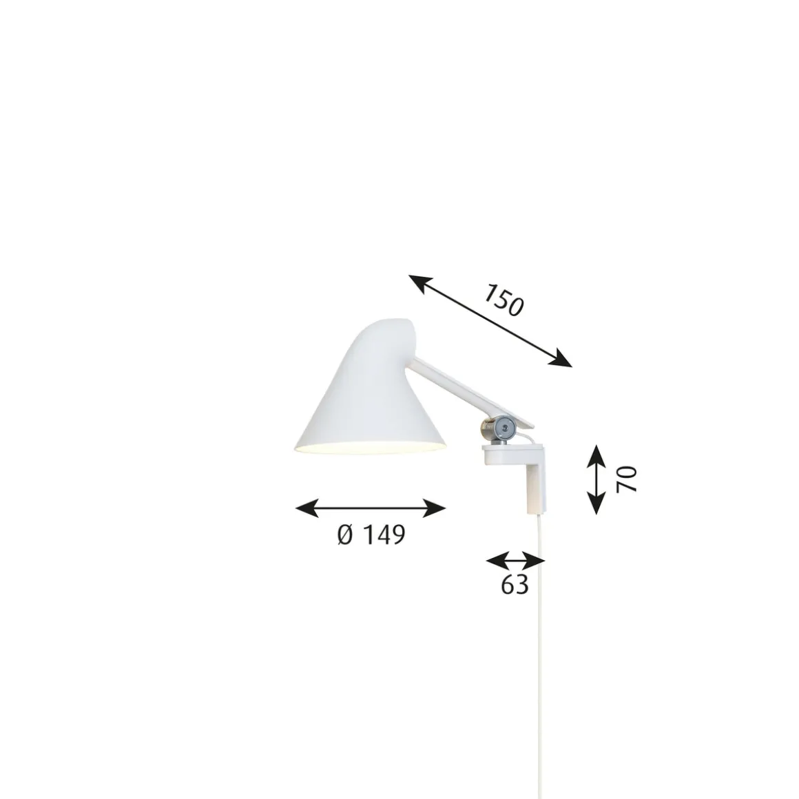 Louis Poulsen NJP vegglampe gir direkte, blendefritt, horisontalt lys og reflekterer samtidig noe av lyset gjennom baksiden av hodet slik at øvre del av armen lyses opp. Armaturhodets ergonomiske design former lyset og sørger for en optimal lysretning. Et enkelt mekanisk system gir stor bevegelsesfrihet, slik at lyset alltid kan stilles inn på det perfekte stedet. Skjermen er malt hvit på innsiden og reflekterer behagelig, diffust lys.