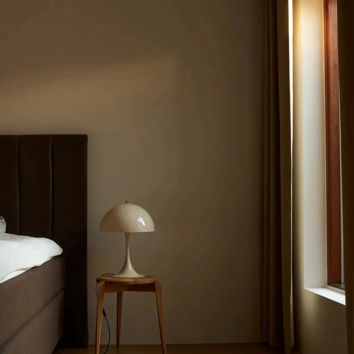 Panthella bordlampe avgir et blendefritt, mykt og komfortabelt lys.