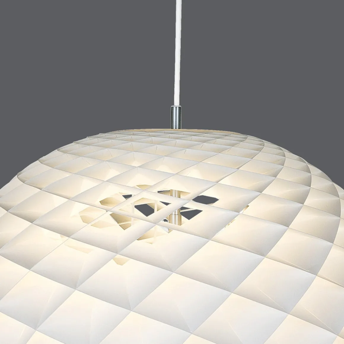 Den sfæriske pendelen avgir en blendefri lysglød som reflekteres av de små diamantformede cellene som armaturen er laget av. Strukturen på lampen sikrer at lyset er blendefritt fra over 45 graders vinkel, samtidig som armaturen avgir et nedadrettet lys og oppadrettet glød som lyset opp taket for å gi omgivelsene en god stemning. Hver celle former lyset ved å skape myke overganger mellom direkte og reflektert lys for å understreke pendelens strålende sfære.