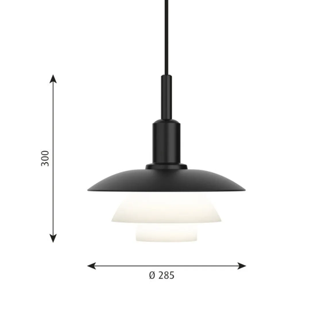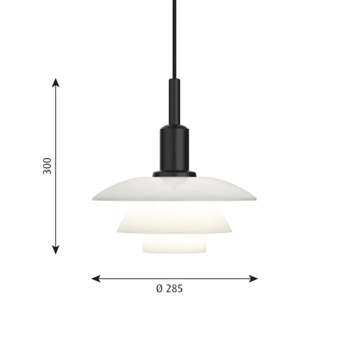 PH 3/3 avgir et diffust og komfortabelt blendingsfritt lys, karakteristisk for det reflekterende flerskjermsystemet av Poul Henningsen. Armaturen finnes i hvitt opalt glass eller mykt svartlakkert metall med en hvit innside. De gjennomskinnelige nyansene i munnblåst opalt glass i tre lag skaper en varm glød rundt pendelen, mens versjonen med metallskjermene med de hvitlakkerte innsidene reflekterer et fint og primært nedadrettet lys. Kombinasjonen av toppskjermen i metall, det opale glasset i midten og de nedre skjermene sørger for begge deler. Den medfølgende avskjermeren i matt glass er lett å sette inn og gir en enda mykere lysfordeling.