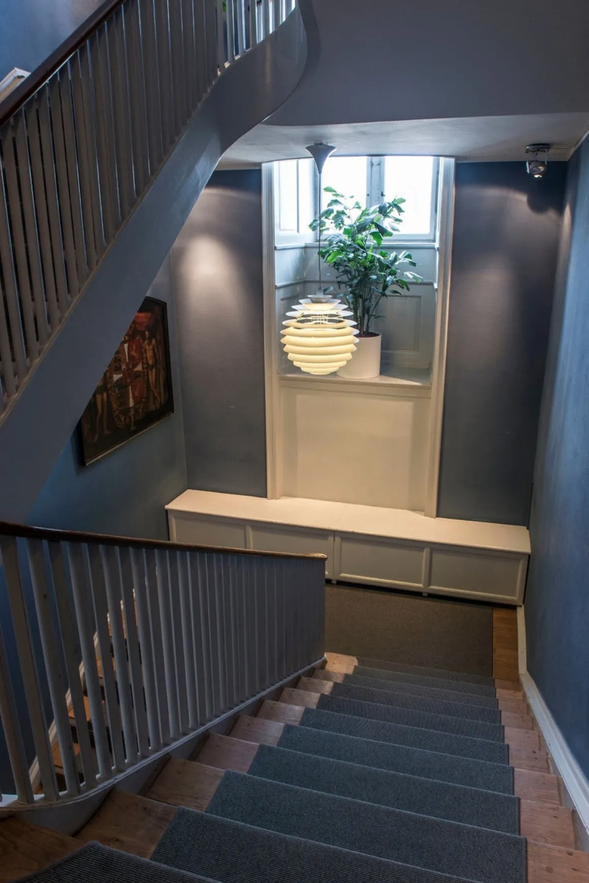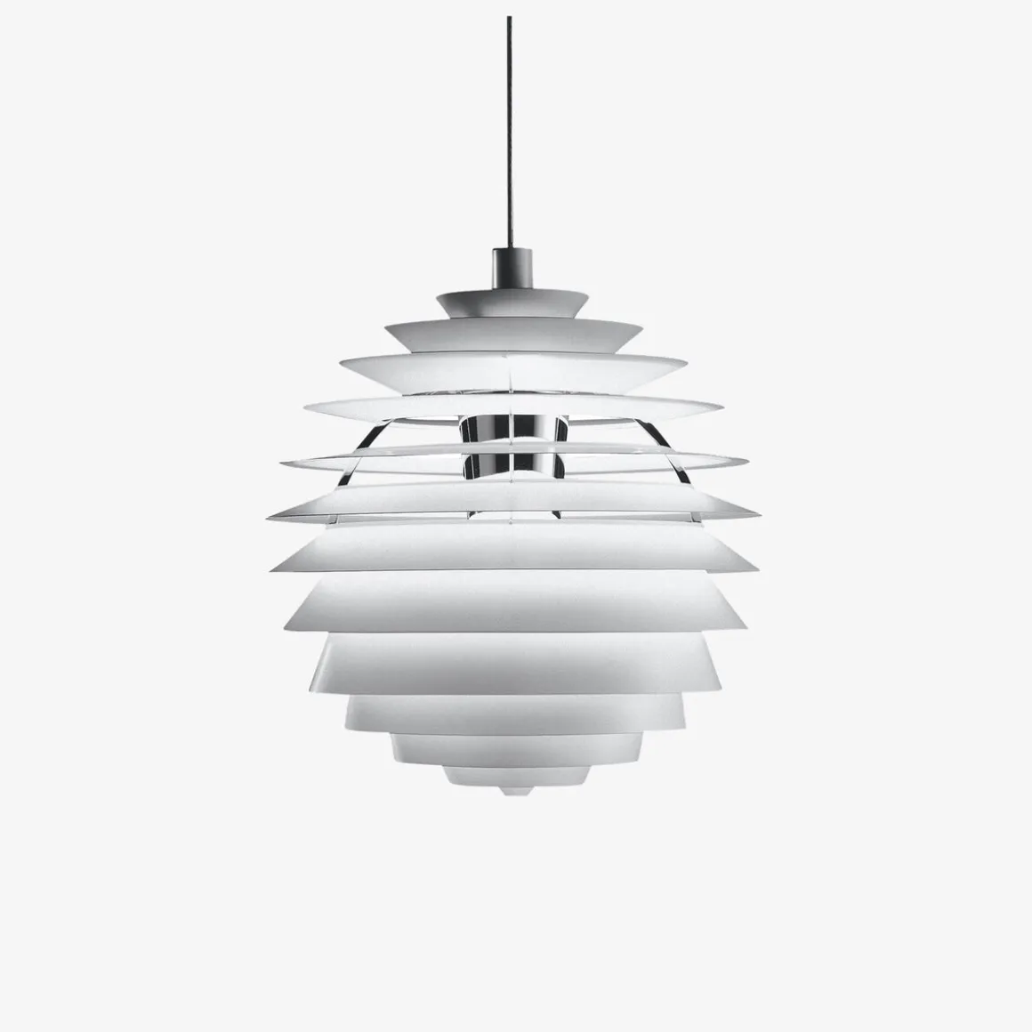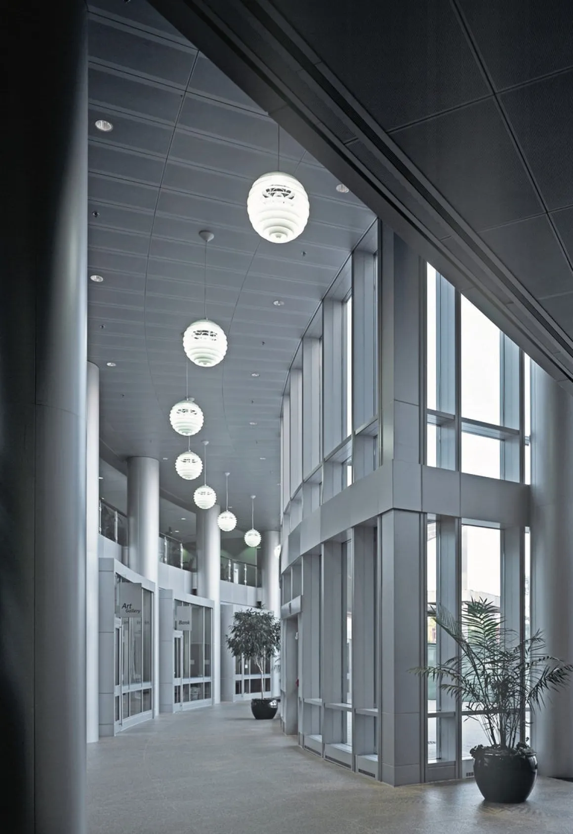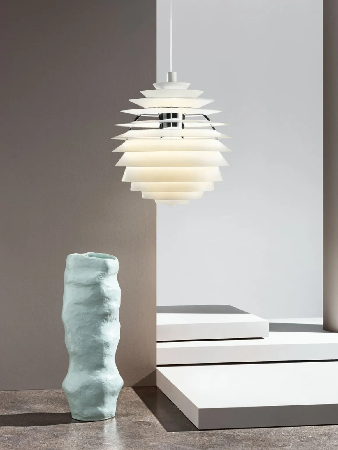 Armaturen utsender et 100 % blendfritt lys. Den geometriske, kuleformede designen er basert på prinsippet om å belyse alle overflatene i samme vinkel. Dette sikrer jevn belysning rundt armaturen og lyser opp både tak og vegger. Matte, malte undersider og blanke overflater gir en attraktiv refleksjon av det dempede lyset og skaper en jevn belysning rundt armaturen.