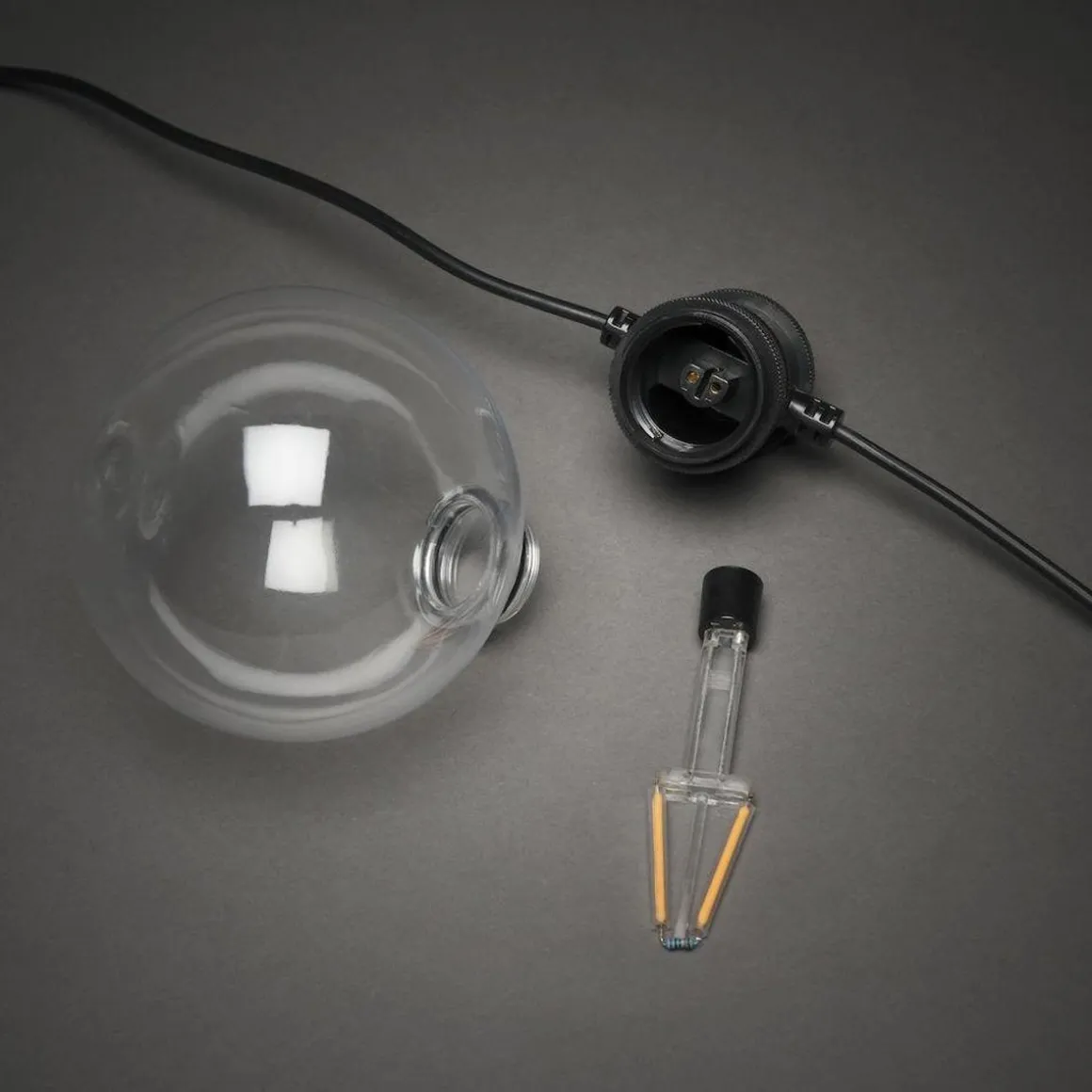 Lysslyngen har 10 LED-lyspærer samt sort ledning og leveres med transformator som har innebygget dimmer, slik at du kan justere lysstyrken etter behov.