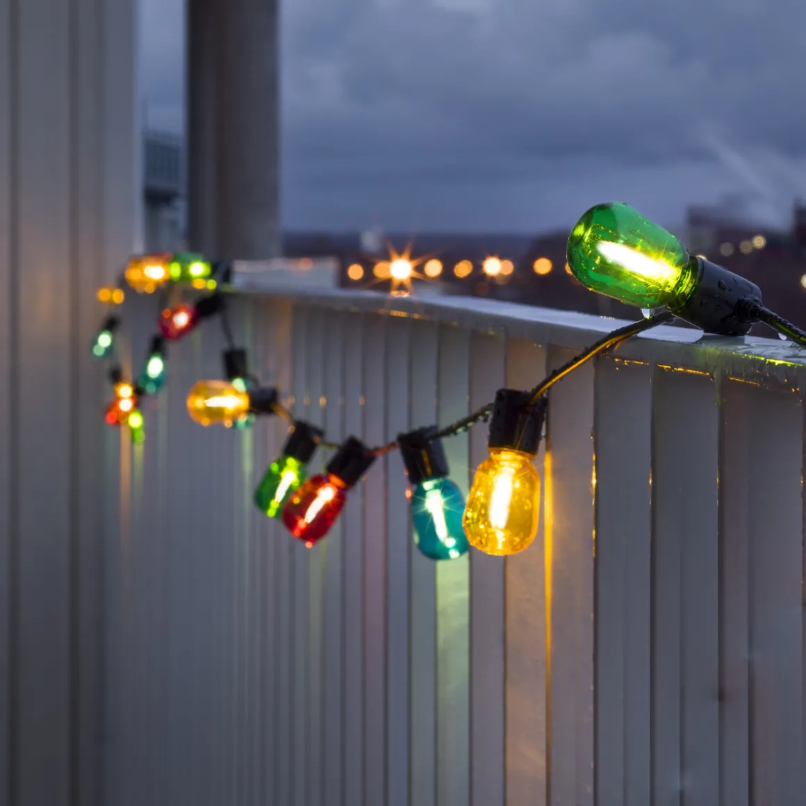 Lysslynge med 40 flerfargede LED-lamper. Faststøpte lyspærer og kuppel i plast som gjør dem uknuselig. Lysene i ulike farger er med på å skape ekstra leken, men koselig stemning. Lyspærene er 5 cm høye og 3 cm i diameter.