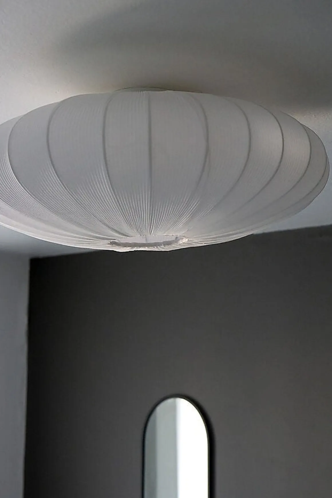 Mamsell en flott plafond som med sin myke form passer godt på for eksempel soverom. Den hvite tekstilen gir et mykt og behagelig lys. 40W E27 (ikke inkludert). Krokoppheng med hvit takkopp i metall.