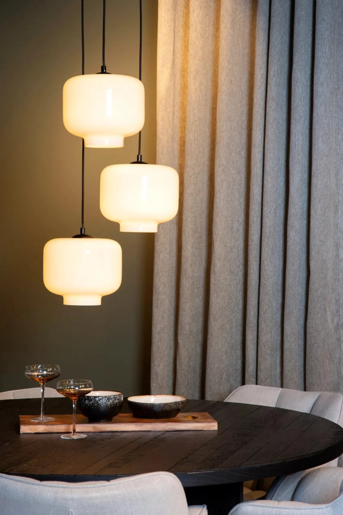Medine er en nydelig taklampeserie i glass. Modellen finnes med røykfarget eller opal glass.