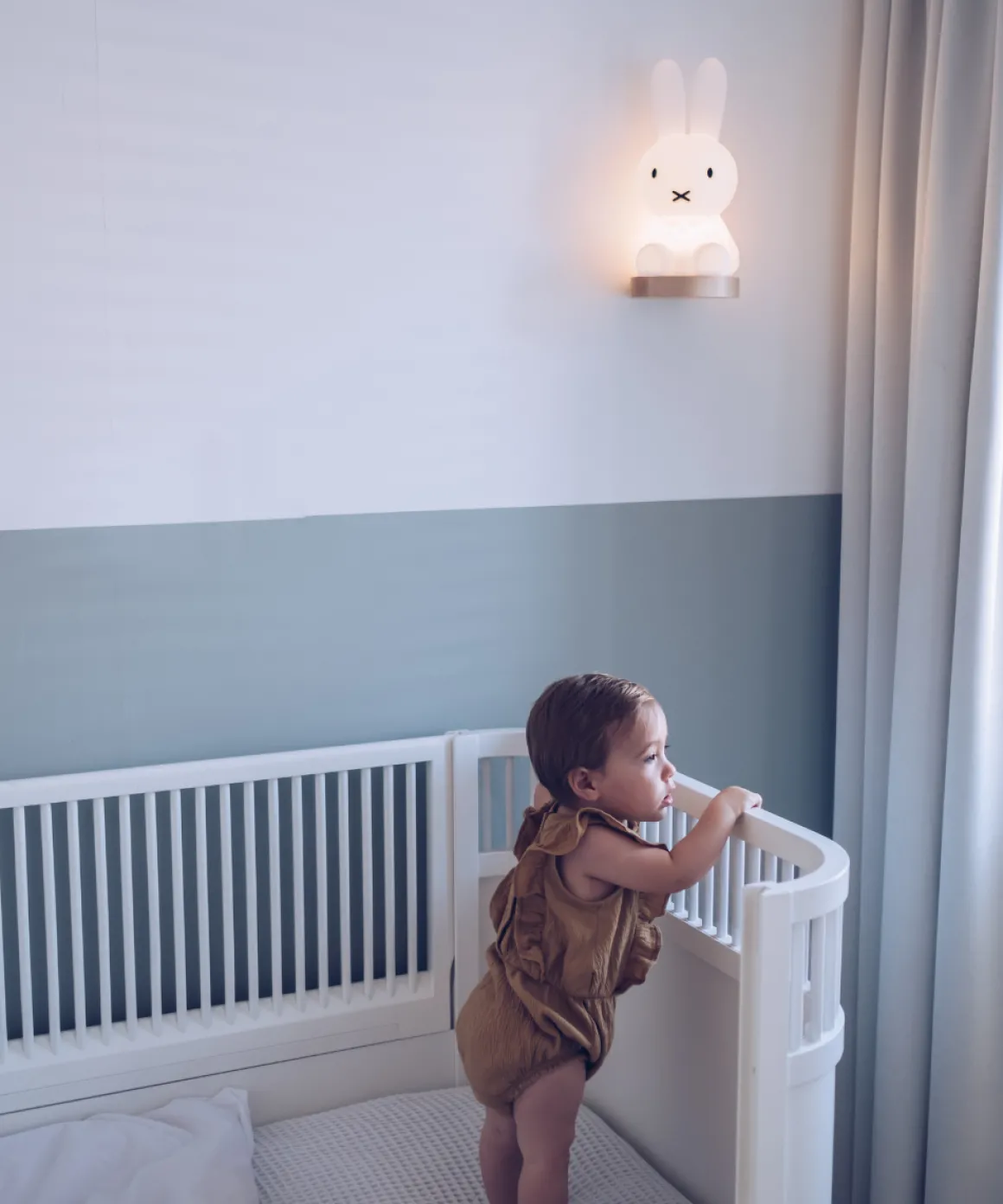 First Light er tilgjengelig i forskjellige versjoner. Denne 30 cm høye nattlampeversjonen med dimmer og hvilemodus er en del av samlingen ‘Miffy and Friends’ av det nederlandske designmerket Mr Maria.