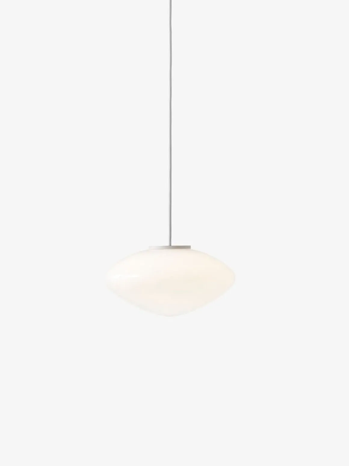 Mist taklampe fra &tradition er inspirert av det varme, diffuse lyset fra morgenstråler som skinner gjennom disen, og tilbyr en moderne versjon av den klassiske globuslyssilhuetten. Mist pendellampen er laget av munnblåst opalglass med hvitbelagte aluminiumsdetaljer og en tekstilledning, og er tilgjengelig i to størrelser.