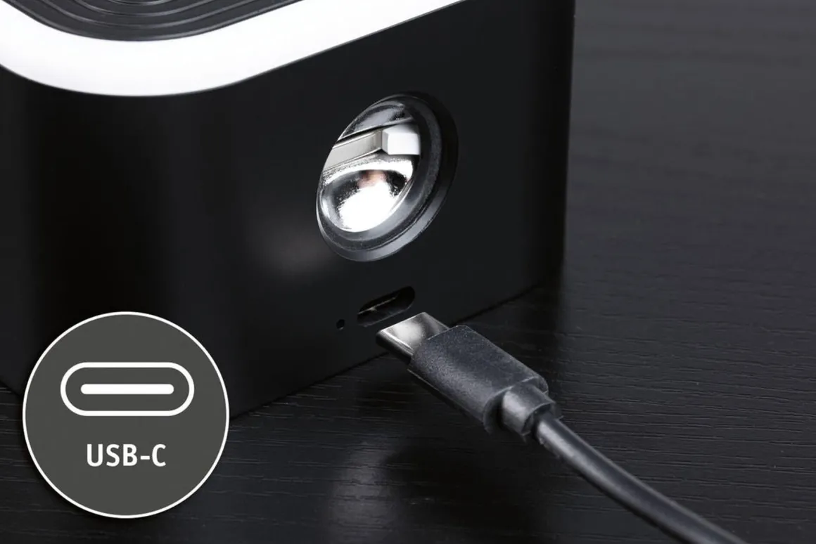 Den mobile bordlampen Varia i sort er den perfekte belysningsløsningen for innendørs bruk og en ekte problemløser. Denne oppladbare USB-C batterilampen kan brukes på en rekke måter, enten som bord, vegg eller bærbar håndlampe. Inkludert i leveringen er et solid bordstativ, et selvklebende veggfeste og et fleksibelt klemmefeste, som alle sørger for enkel håndtering. Takket være de magnetiske kulehodeleddene på holderne kan lyshodet enkelt roteres eller fjernes. Lyseffekten til lampen kan skiftes og styres separat oppover og nedover. Downlighten kan dimmes og den hvite lyskontrollen tilbyr forskjellige fargetemperaturer (2700/4000/6500 K) å velge mellom etter behov. Det varmhvite 2700K lyset i uplighten kan dimmes og gir dermed flott bakgrunnsbelysning eller kan brukes som indirekte lys. Minnefunksjonen lar lyset huske den siste innstillingen når den slås på igjen. Den korte ladetiden og den lange belysningsvarigheten gjør dette fleksible lyset ekstremt praktisk og allsidig.