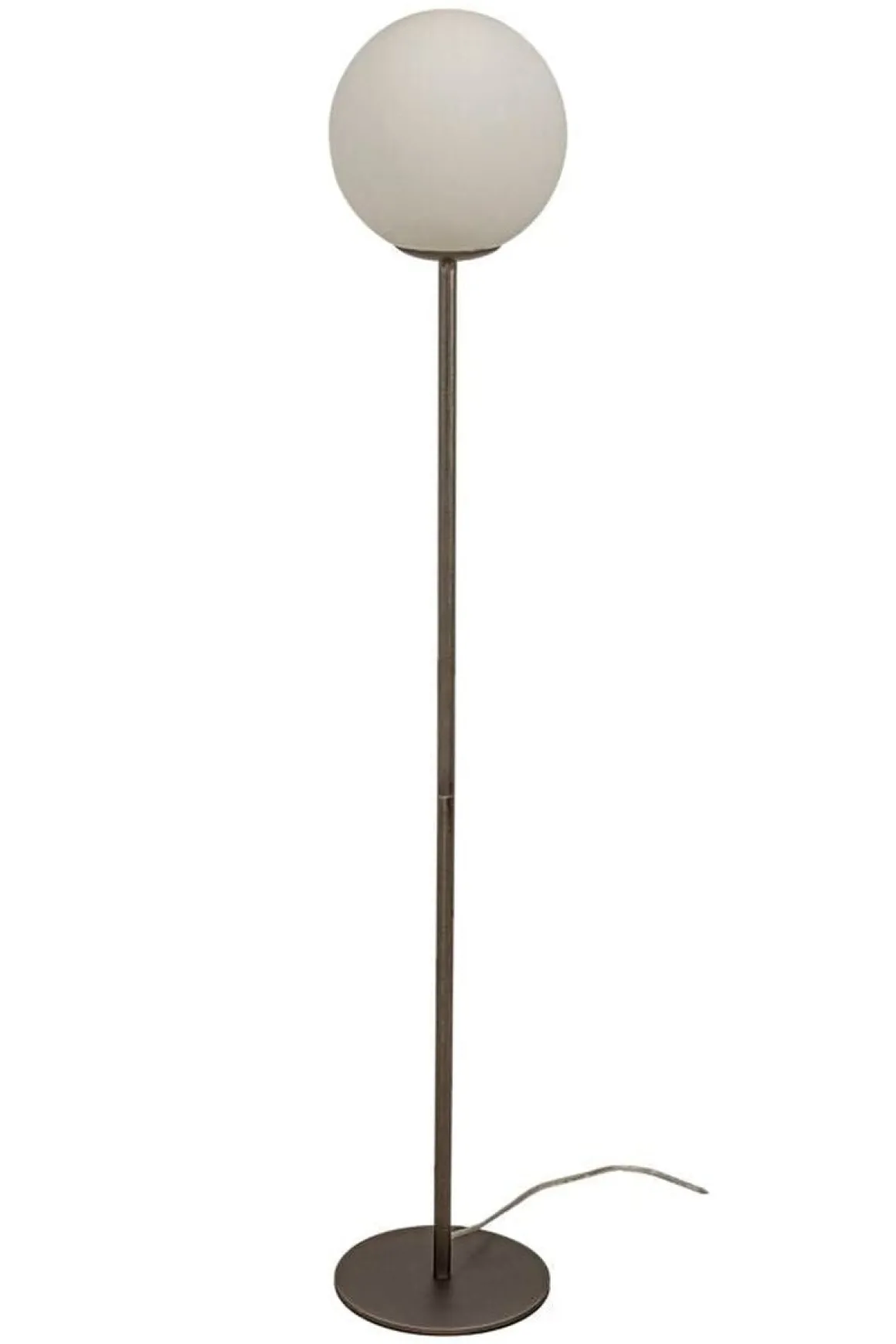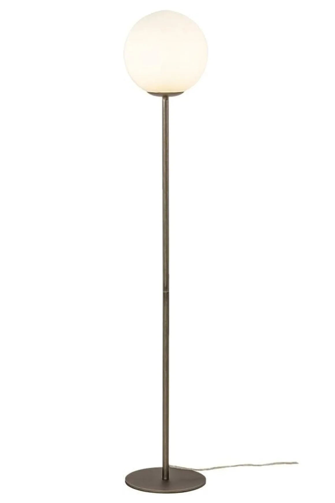 Molekyl gulvlampe med lampefot i svart og røkfarget glasskuppel. Lampen er 130 cm høy og. hovedmateriale er metall/glass. Wattstyrke maks 30W. Lampen tennes og slukkes med fotbryter på 1,9 meter klar ledning med støpsel. Lyspære medfølger ikke.
